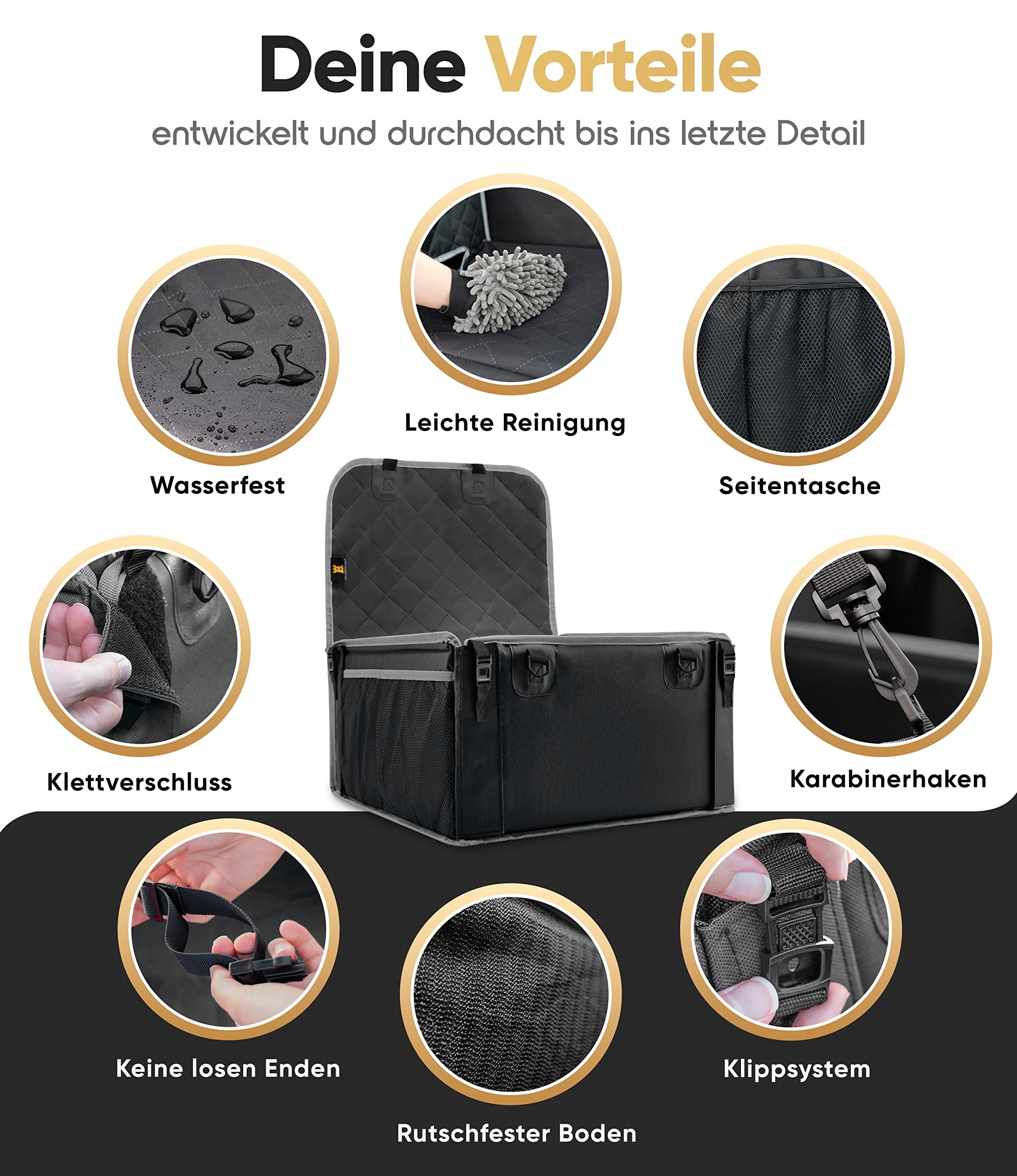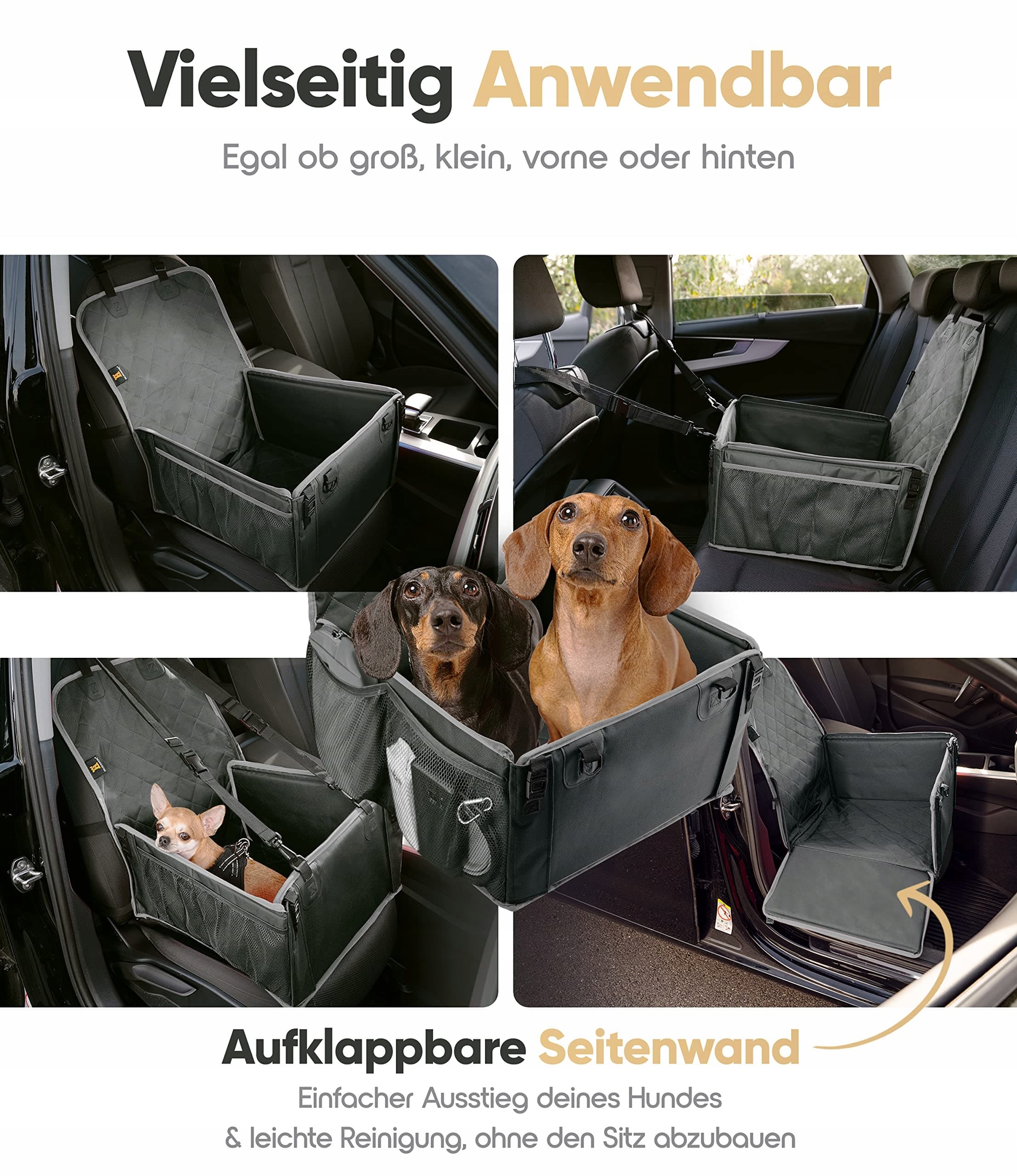 MAKSYMALNE BEZPIECZEŃSTWO – Dzięki zintegrowanemu systemowi bezpieczeństwa klik, niechciane otwarcie jest niemożliwe. Ponadto każda ściana jest podwójna i miękko wyściełana oraz wzmocniona prętem z włókna szklanego. Regulowana smycz dla psa chroni Twojego zwierzaka również podczas mocnego hamowania.