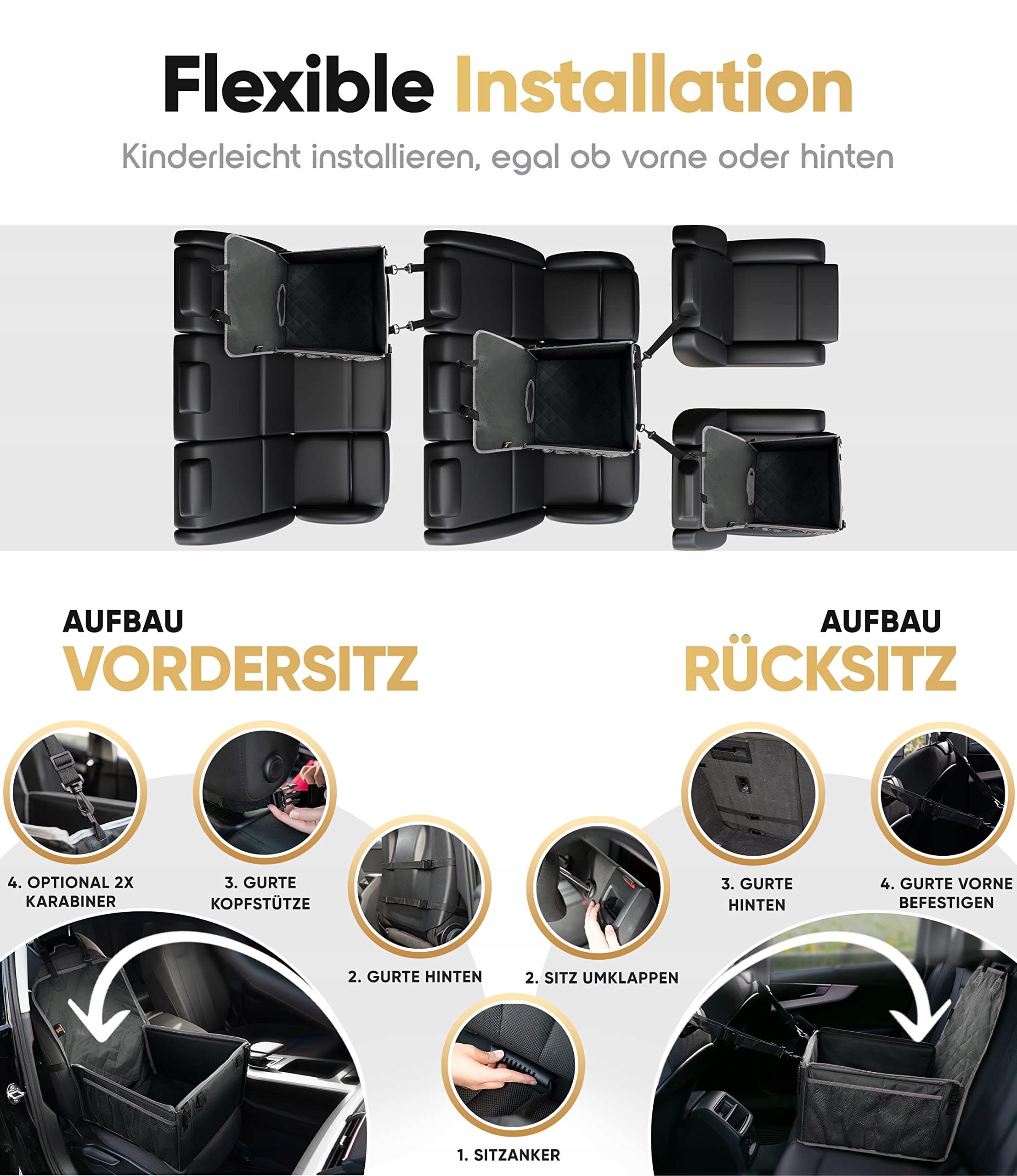 SZYBKI I ŁATWY MONTAŻ – Fotelik samochodowy dla psa można zainstalować w czterech prostych krokach. Łatwy do przechowywania, lekki i kompaktowy. Ponadto łatwy w czyszczeniu dzięki łatwemu w utrzymaniu i odpornemu na zużycie materiałowi 600D Oxford.