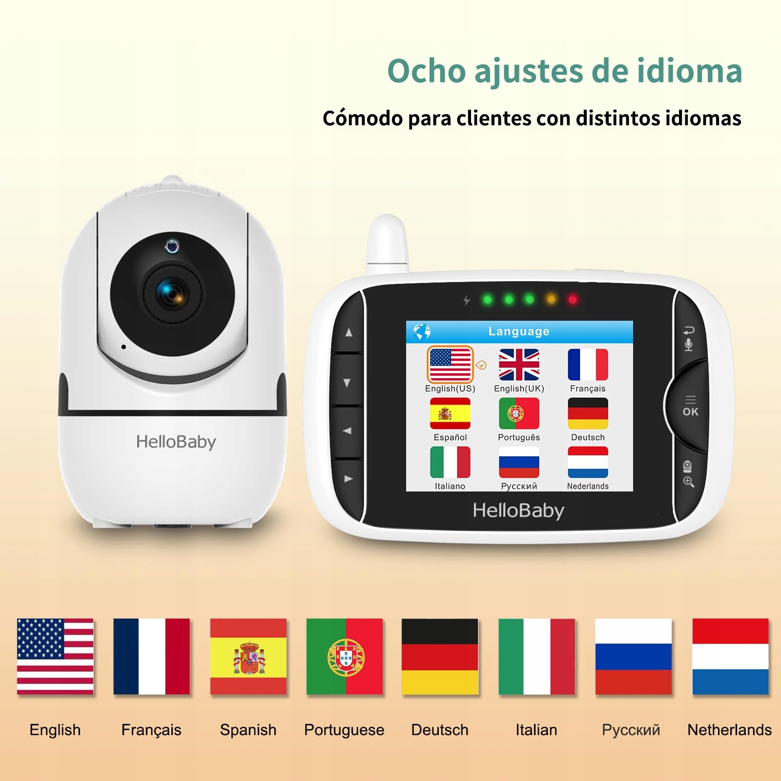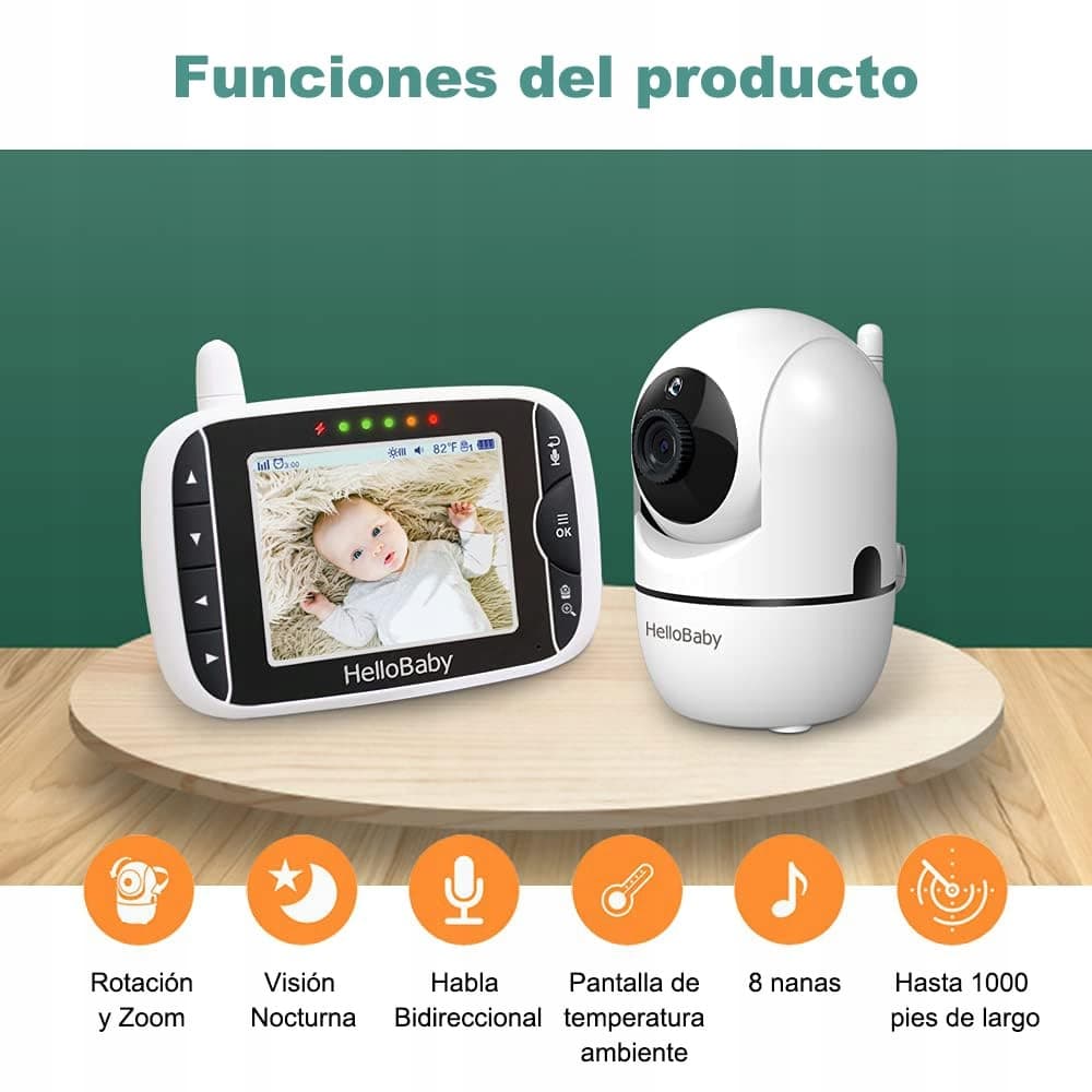 HelloBaby Monitor dla niemowląt z kamerą, ekran 3,2 cala, obrót 355°-pochylenie 120°-zoom, monitor niemowlęcy bez Wi-Fi, dwukierunkowe audio, temperatura, 8 kołysanek, widzenie nocne, czujnik temperatury (czarny/biały)