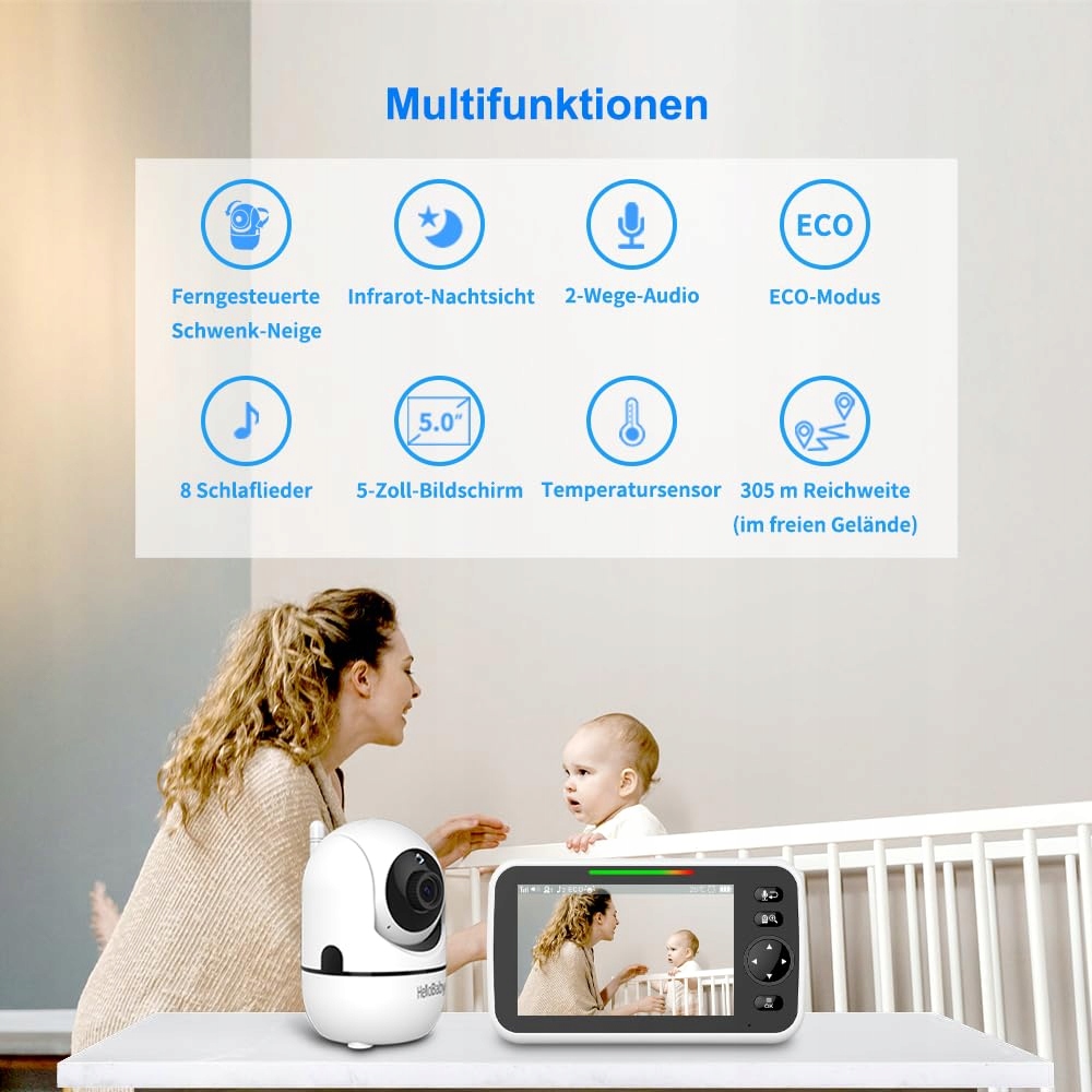 HELLOBABY Niania Elektroniczna 5 Cali Kamera Audio Nocny Tryb 2-Kierunkowy