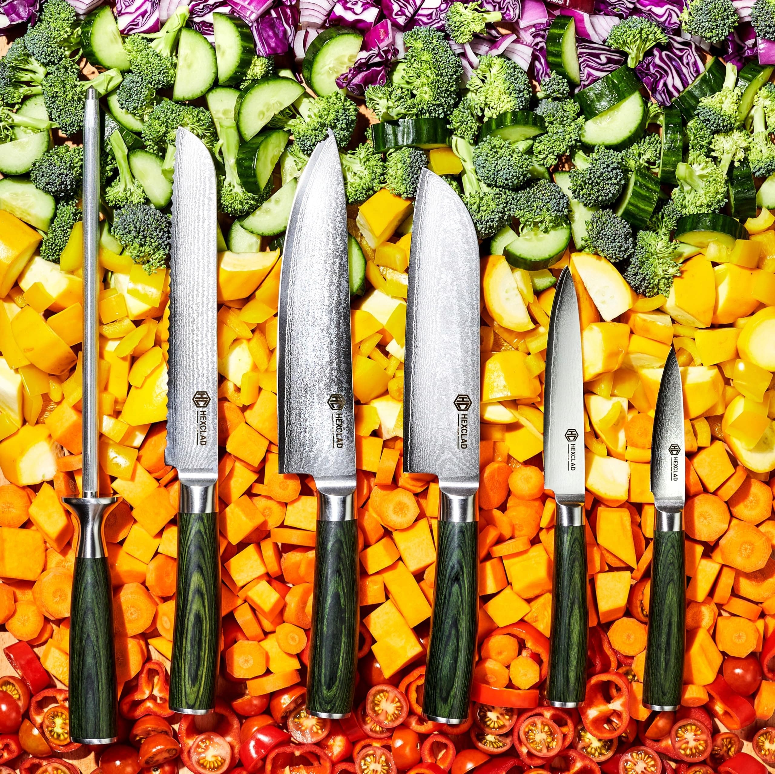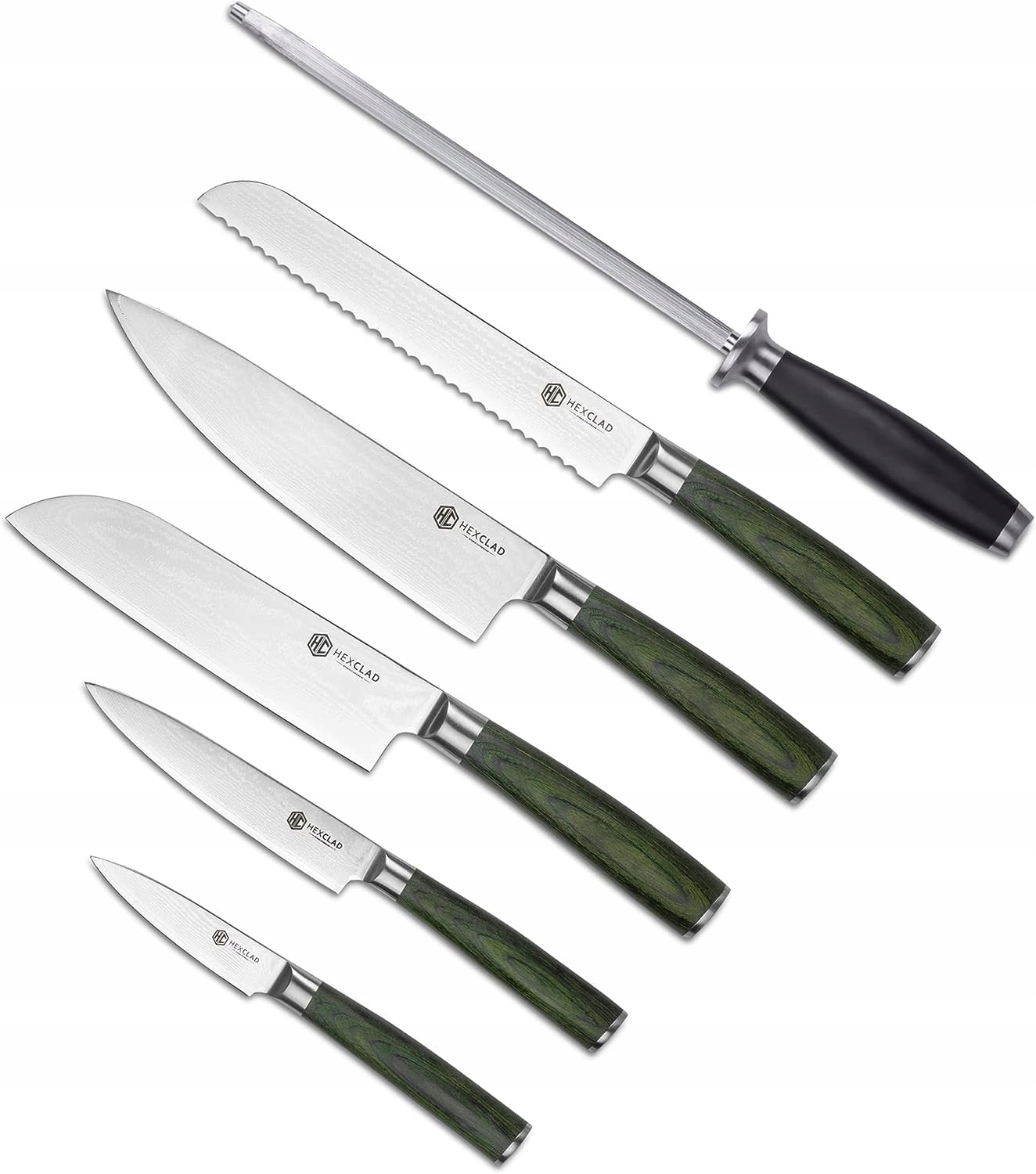 HEXCLAD Zestaw Noży 6-częściowy Japońskie Ostrza Damastowe Stal Nierdzewna | Premium Supply