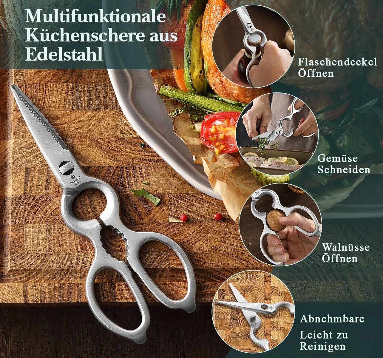 Wielofunkcyjny nóż kuchenny: Odpowiedni do krojenia, dzielenia, siekania lub na BBQ, na świeżym powietrzu, kemping itp. Unikaj używania zwykłych noży do żywności z kośćmi, takich jak kurczak, aby chronić ostrze. Proszę używać specjalnego noża do kości do krojenia kości.