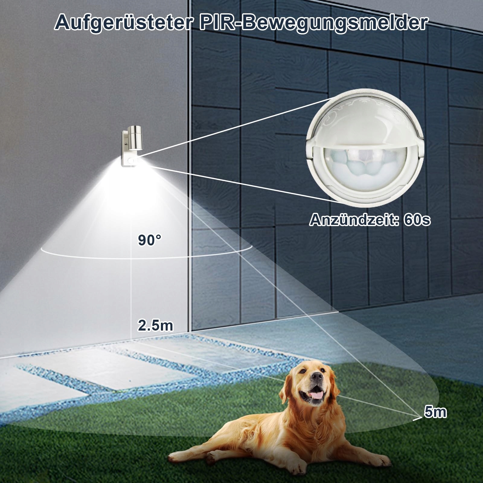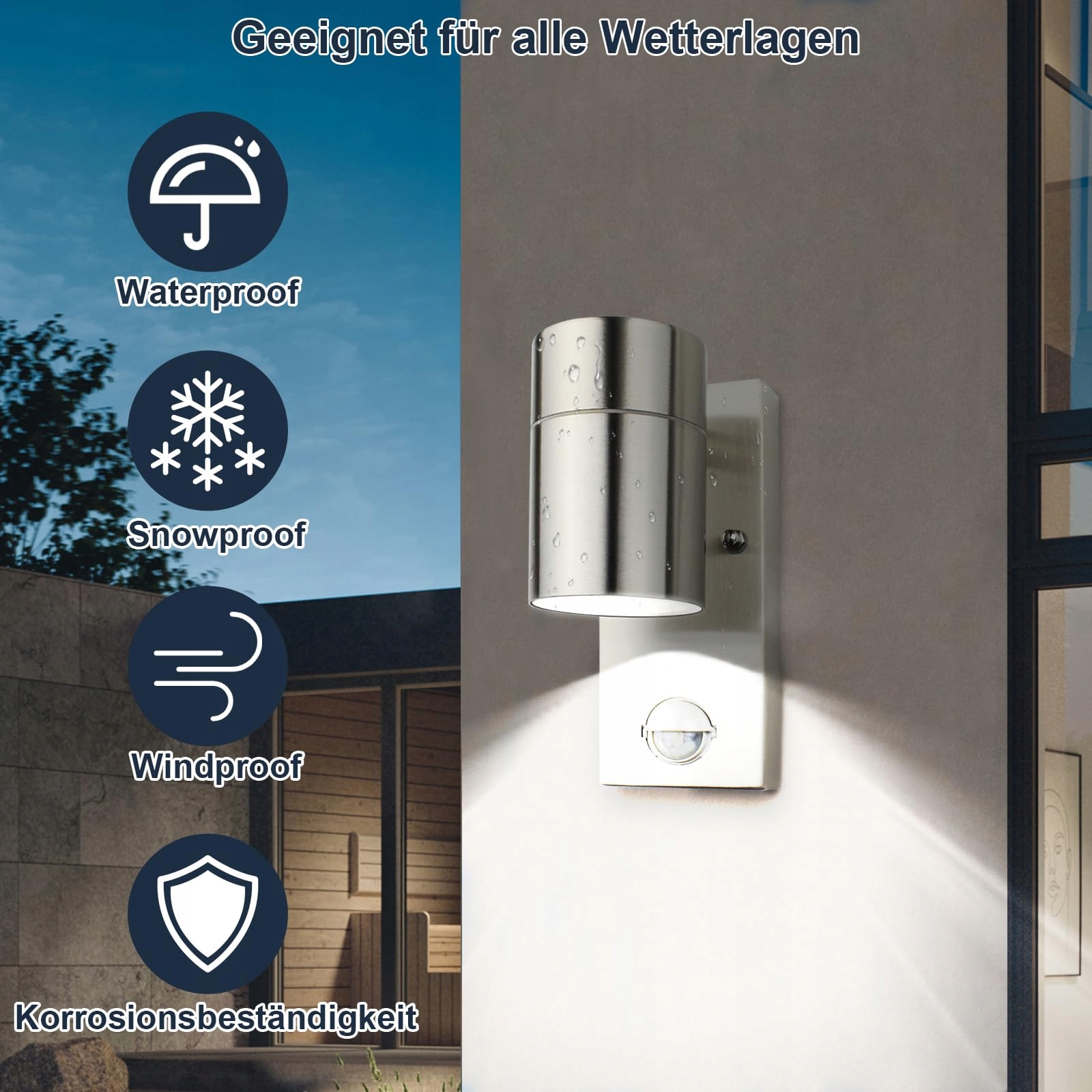 HiBay Lampa zewnętrzna z czujnikiem ruchu LED GU10 Lampa ścienna IP44 Nowoczesna lampa ścienna ze stali nierdzewnej Lampa zewnętrzna PIR 230V, w zestawie 1x żarówka GU10 zimna biel