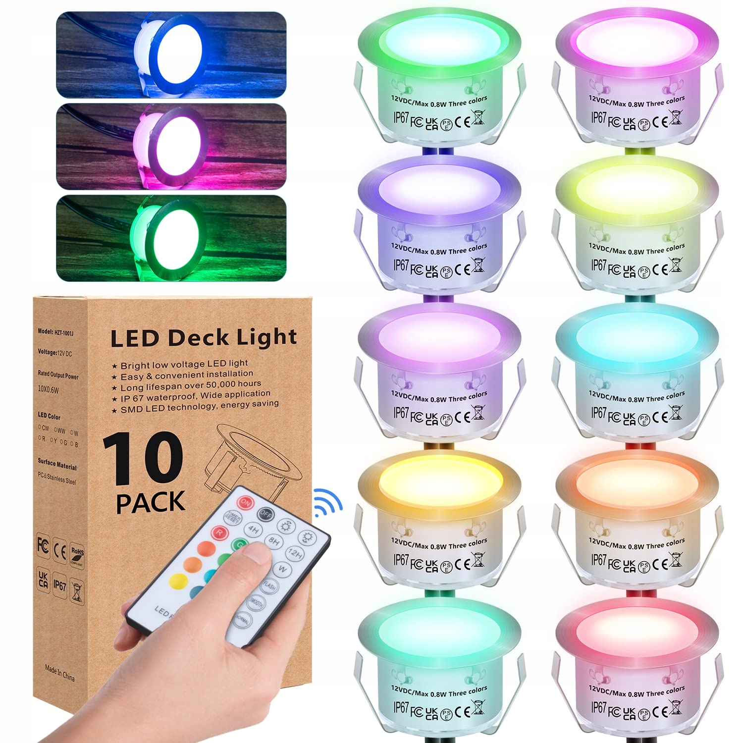 HIBOITEC 10 szt. RGBW LED oprawy wpuszczane do podłogi na zewnątrz Ø42mm IP67 wodoodporne, 0,8W LED reflektory wpuszczane z pilotem ściemnialne, reflektory tarasowe na zewnątrz do tarasu, ogrodu, chodnika, schodów, pełny zestaw