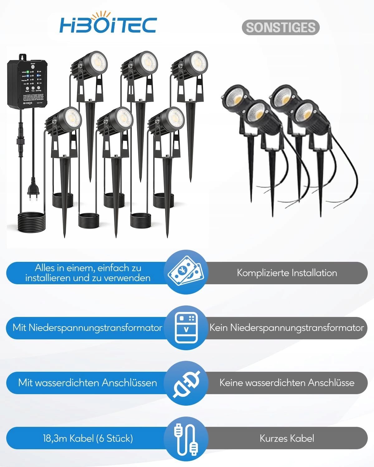 HIBOITEC LED Garden Lights 16M with Transformer Photodetector Waterproof