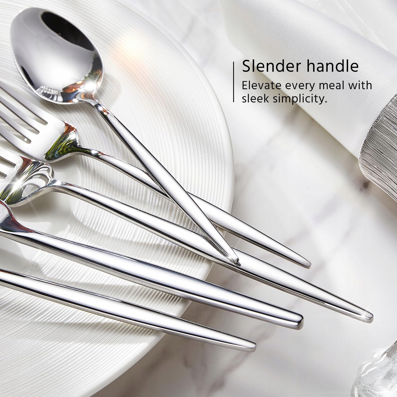 Wygodne w użyciu: Te sztućce łączą styl i funkcjonalność. Dzięki klasycznej sylwetce z wyraźnymi liniami i polerowanej powierzchni, wydłużone uchwyty są eleganckie i dobrze pasują do istniejącej zastawy. Zostały fachowo zaprojektowane dla optymalnej wagi, zapewniając trwałość i przyjemne doznania podczas jedzenia.