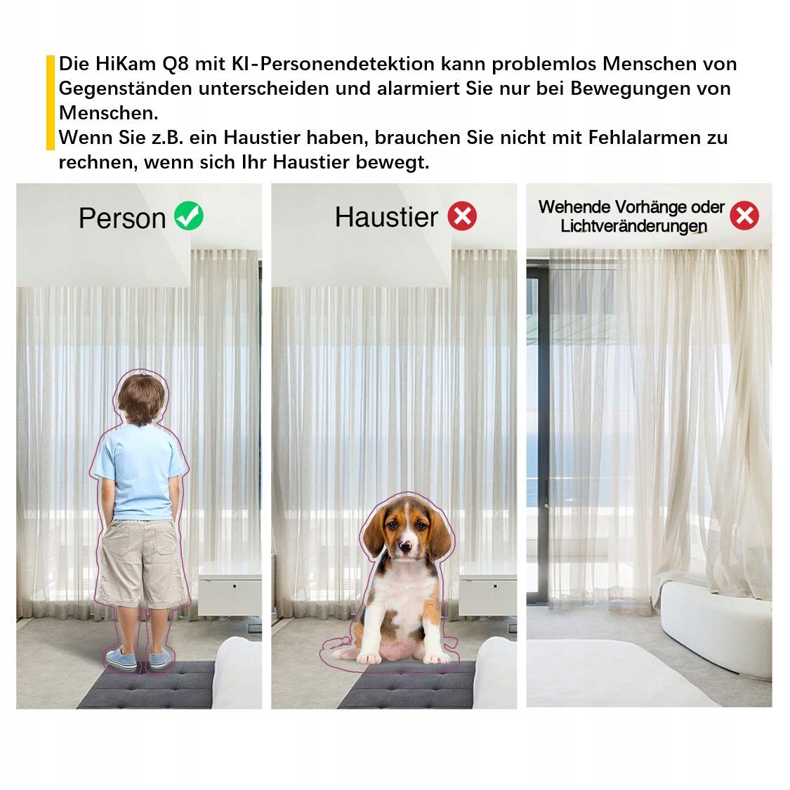 HiKam Q8 Kamera do monitoringu z aplikacją i wsparciem - zabezpieczanie danych i chmura w Niemczech | Rozpoznawanie osób | Kompatybilna z Alexa | Kamera IP WLAN do użytku wewnętrznego | Niania elektroniczna z kamerą | Czujnik ruchu