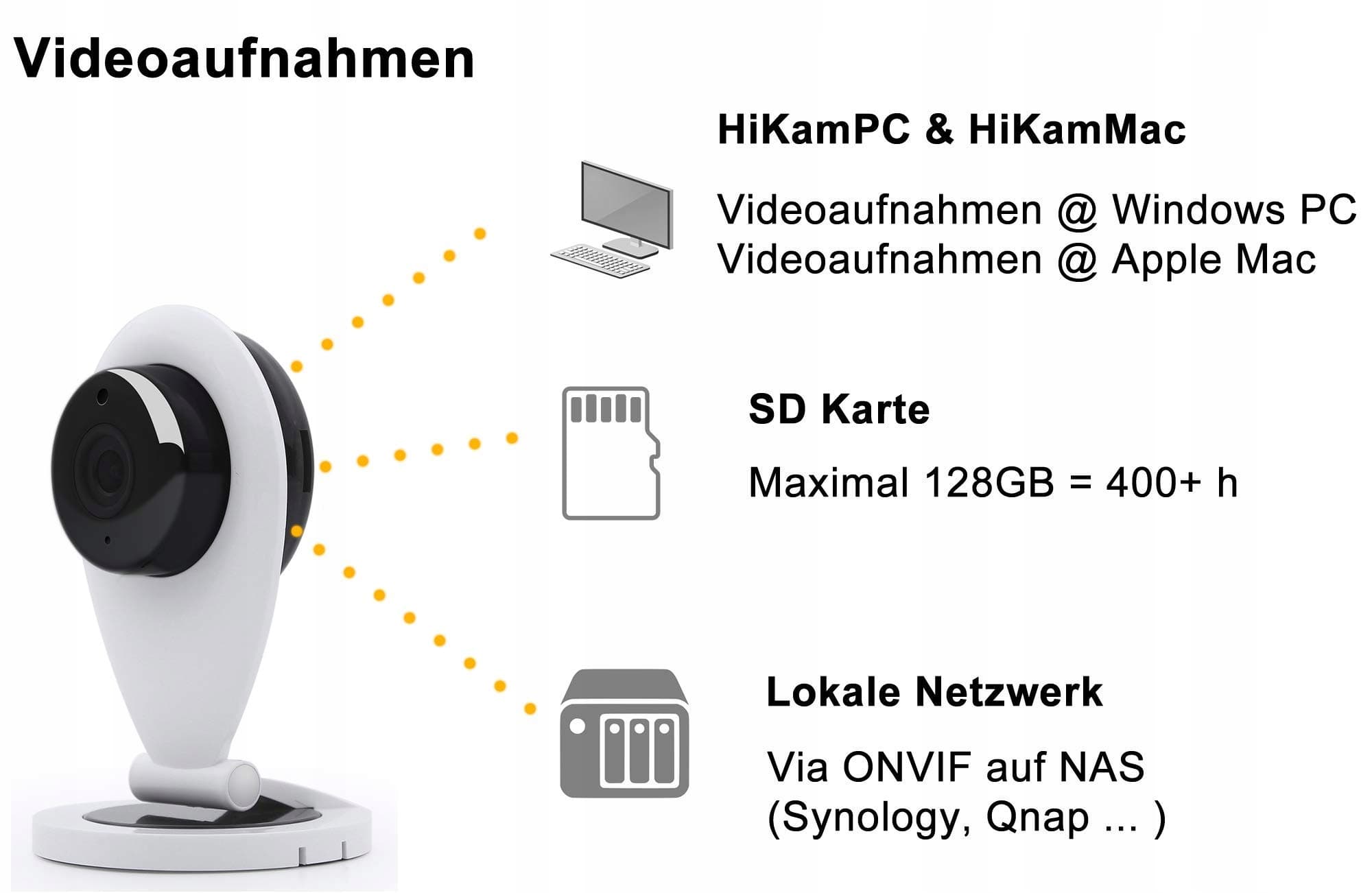 HiKam S6 Kamera do monitoringu z aplikacją i wsparciem - kopia zapasowa danych i chmura w Niemczech | Rozpoznawanie osób | Kompatybilna z Alexa | Kamera IP WLAN do użytku wewnętrznego | Monitor oddechu dla niemowląt | Czujnik ruchu | Kamera WiFi