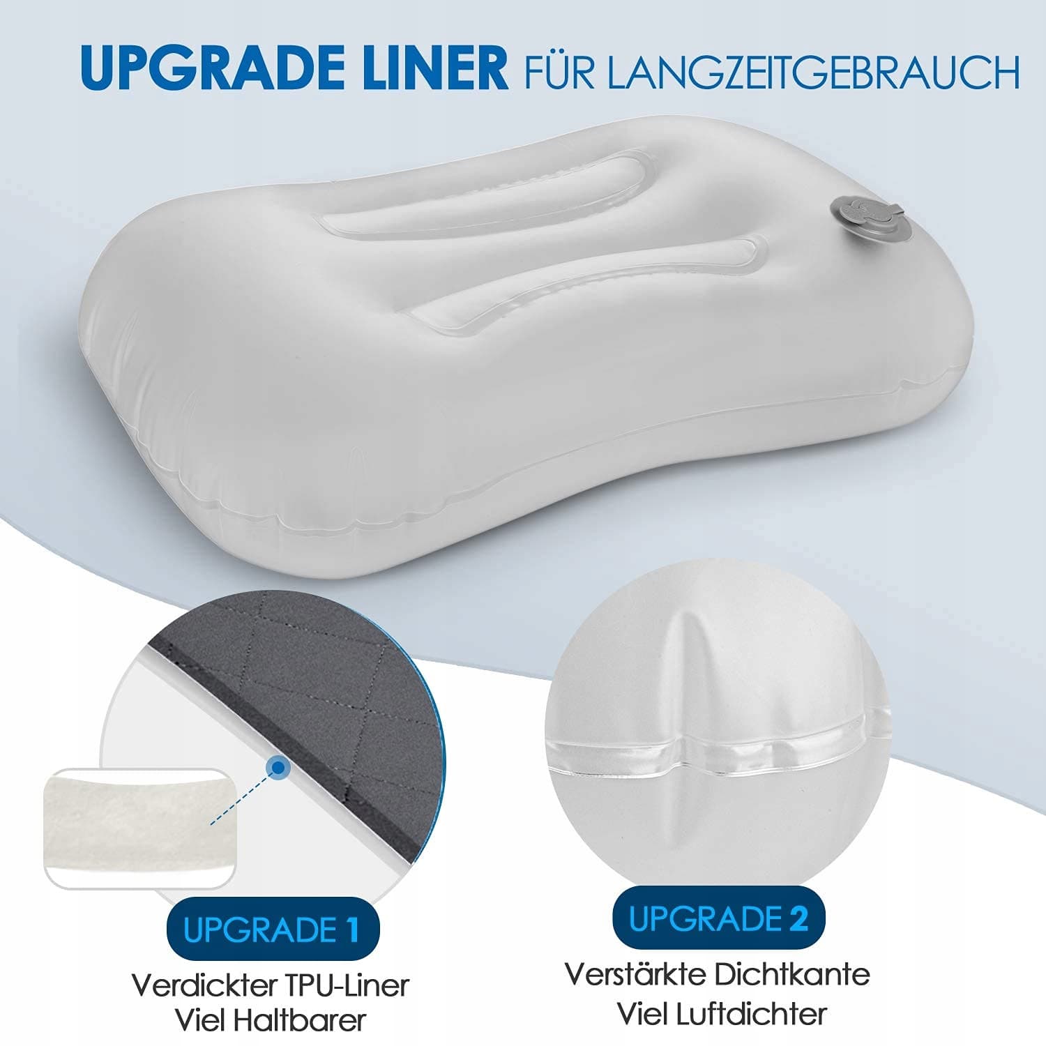 HIKENTURE Nadmuchiwane poduszka do kempingu/podróży z odpinanym pokrowcem, ergonomiczna poduszka, wygodna, do podróży/na świeżym powietrzu, nadmuchiwane poduszka do podróży, szara