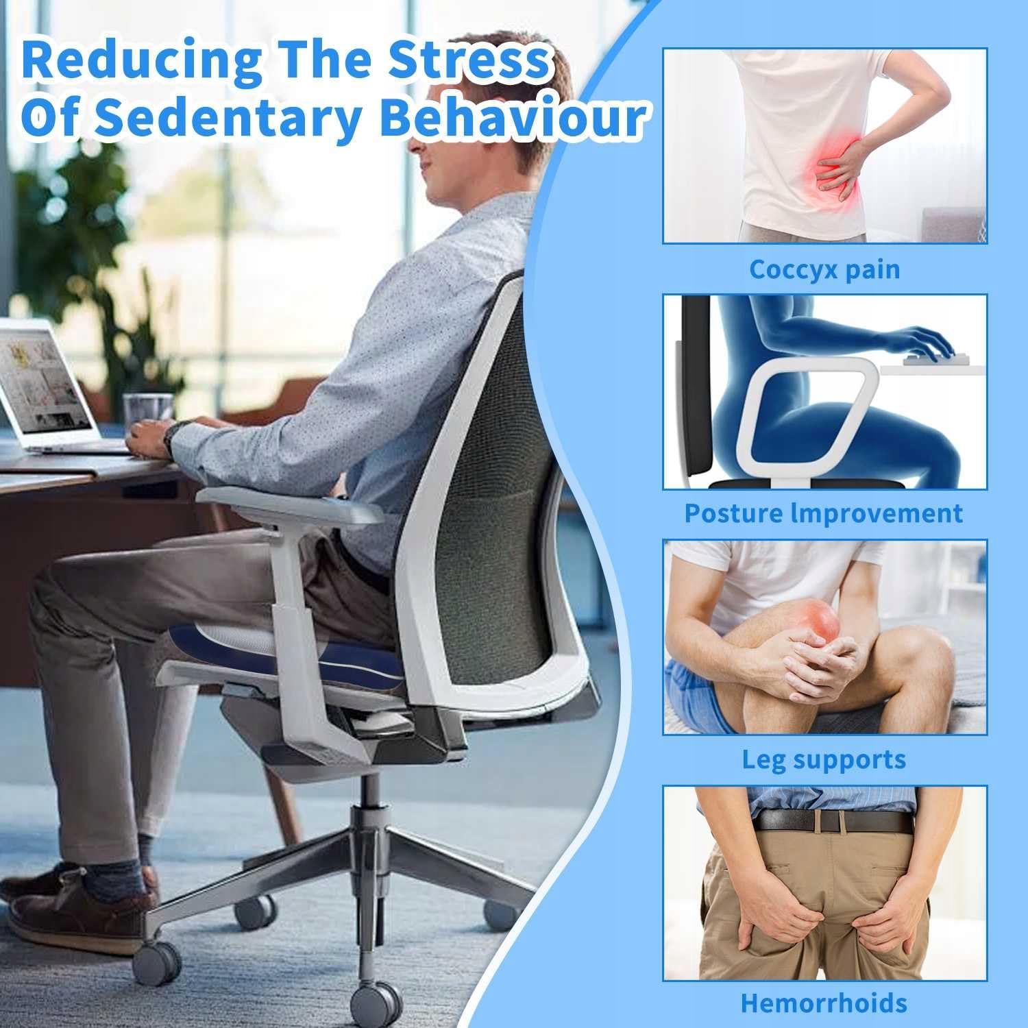 [WSPIERANIE LENDŹWIA]Nasza poduszka na kość ogonową pomaga utrzymać zdrowe ustawienie kręgosłupa i zapewnia wygodę siedzenia przez cały dzień. Może skutecznie łagodzić dolegliwości w dolnej części pleców spowodowane długotrwałym siedzeniem i jest również doskonałym rozwiązaniem na ból rwy kulszowej.