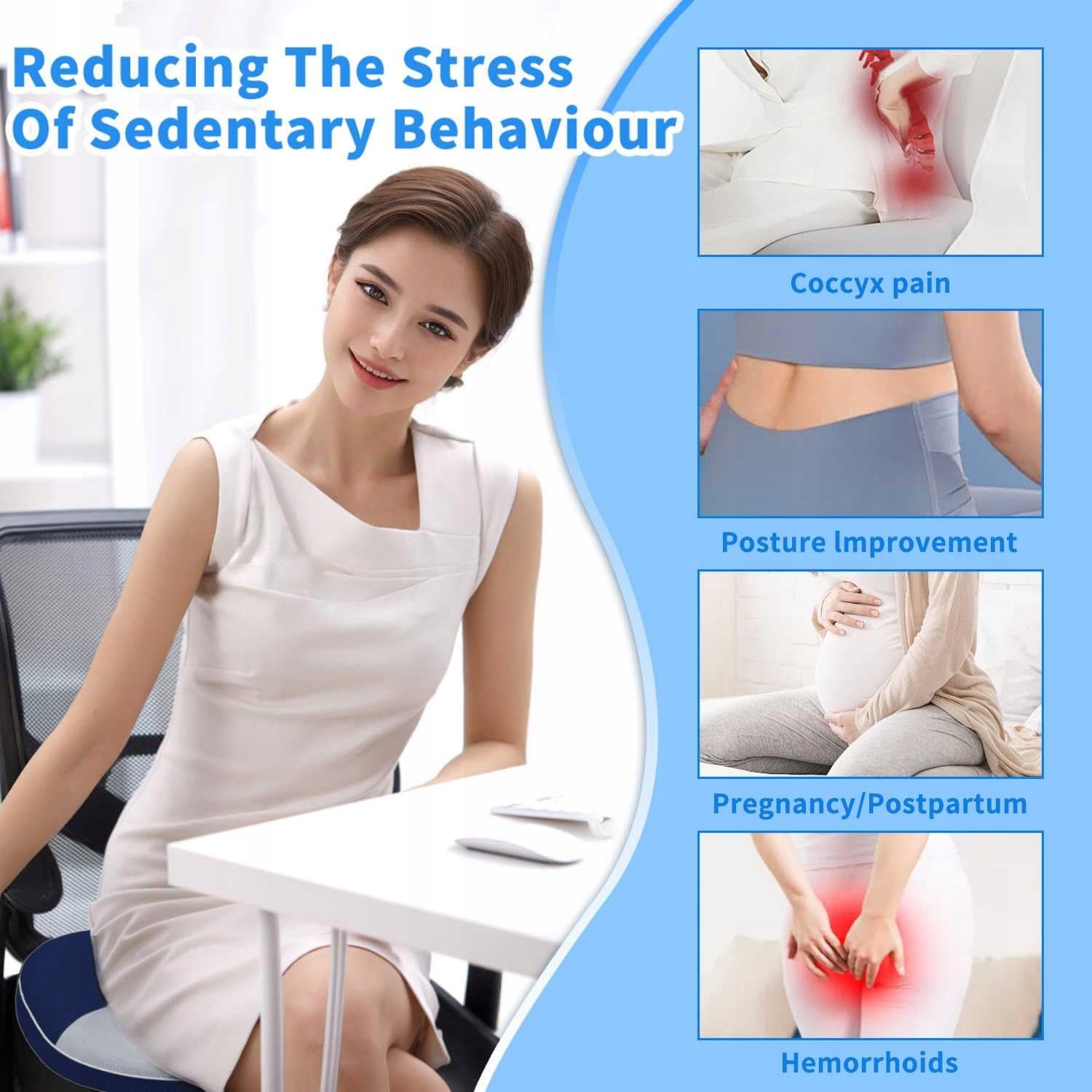 [WSPARCIE LĘDŹWIOWE]Nasza poduszka na kość ogonową pomaga utrzymać zdrową postawę kręgosłupa i zapewnia wygodę siedzenia przez cały dzień. Może skutecznie łagodzić dolegliwości w dolnej części pleców spowodowane długotrwałym siedzeniem i jest również doskonałym rozwiązaniem na ból rwy kulszowej.