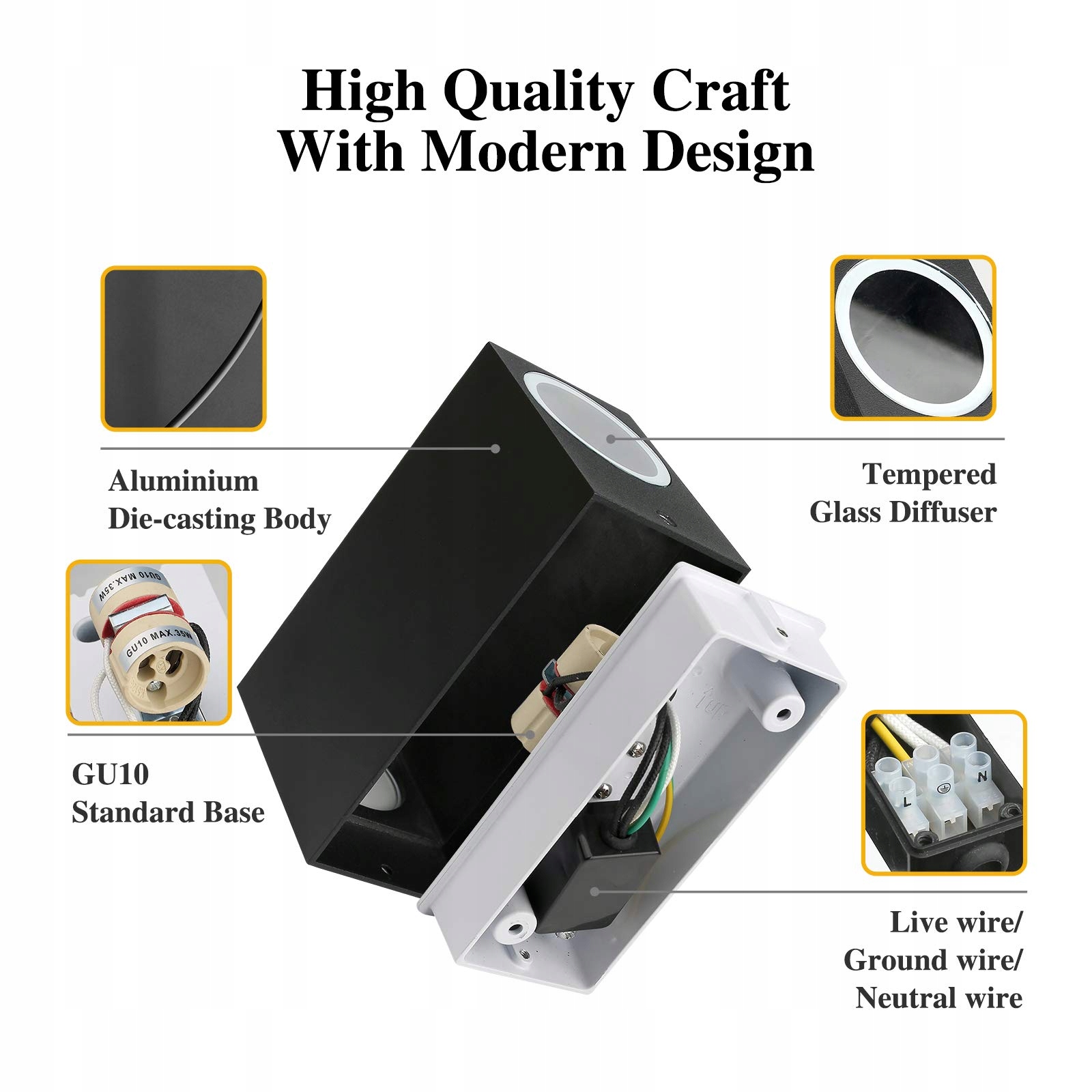 2x gniazdo GU10 (maks. 30W każde), źródła światła nie są dołączone i są kompatybilne ze wszystkimi źródłami światła GU10: kompatybilne z inteligentnym domem, filamentem lub LED. Gwarantowany łatwy montaż.