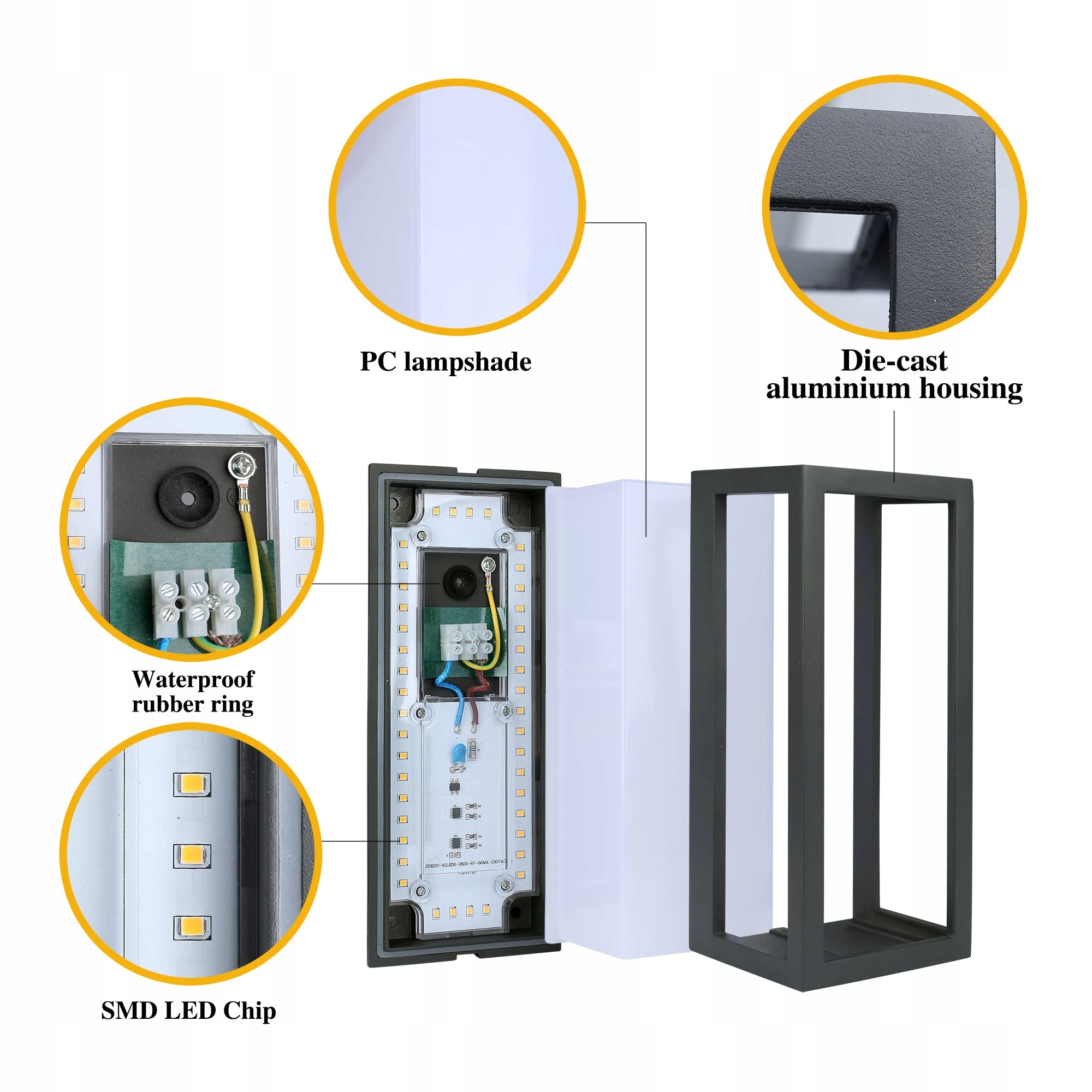 Lampa ścienna zewnętrzna jest wyposażona w diody SMD do 18W i 870LM mocy światła. Nadaje się do ogrodu, korytarza, schodów, tarasu, balkonu, ścieżki, podjazdu, korytarza itp.