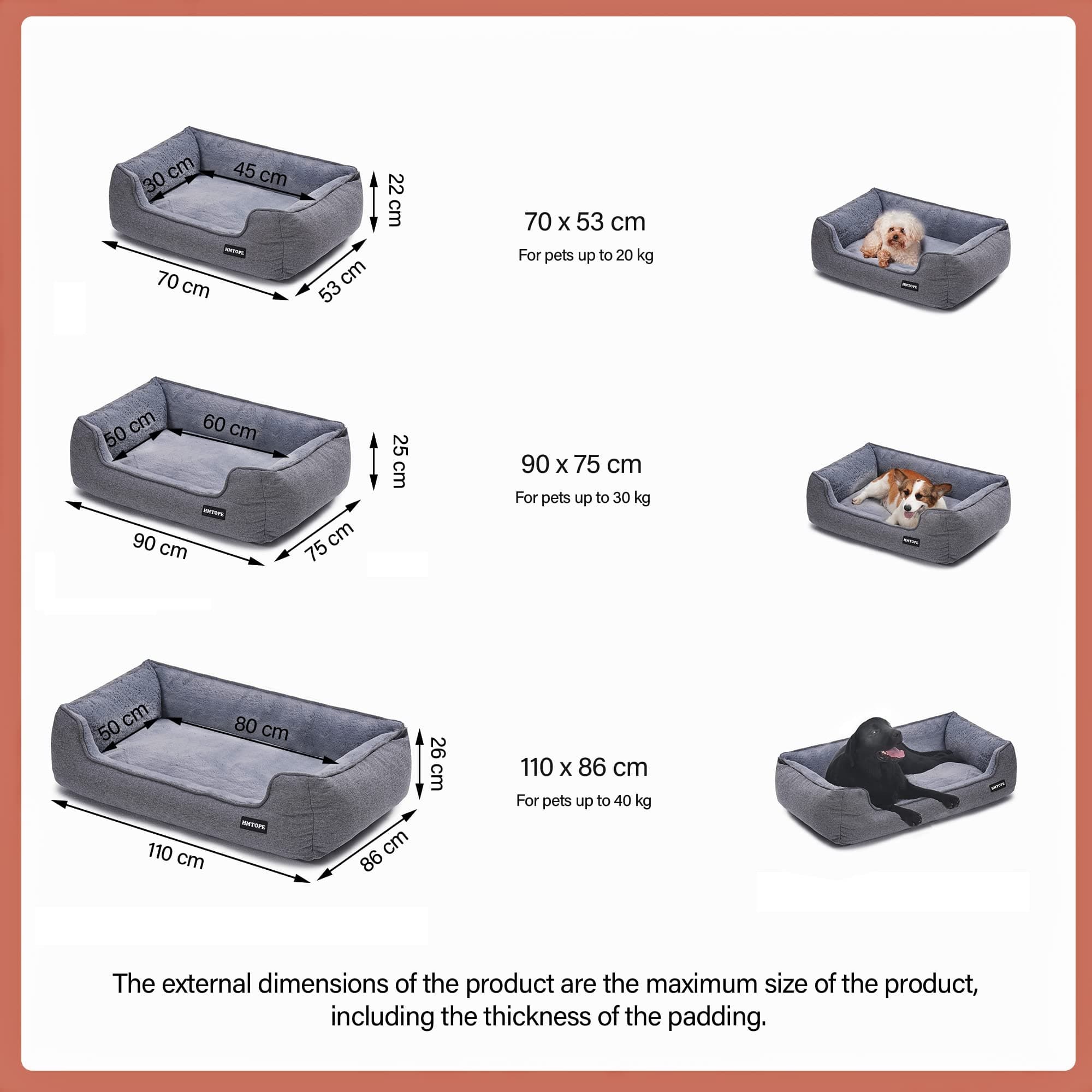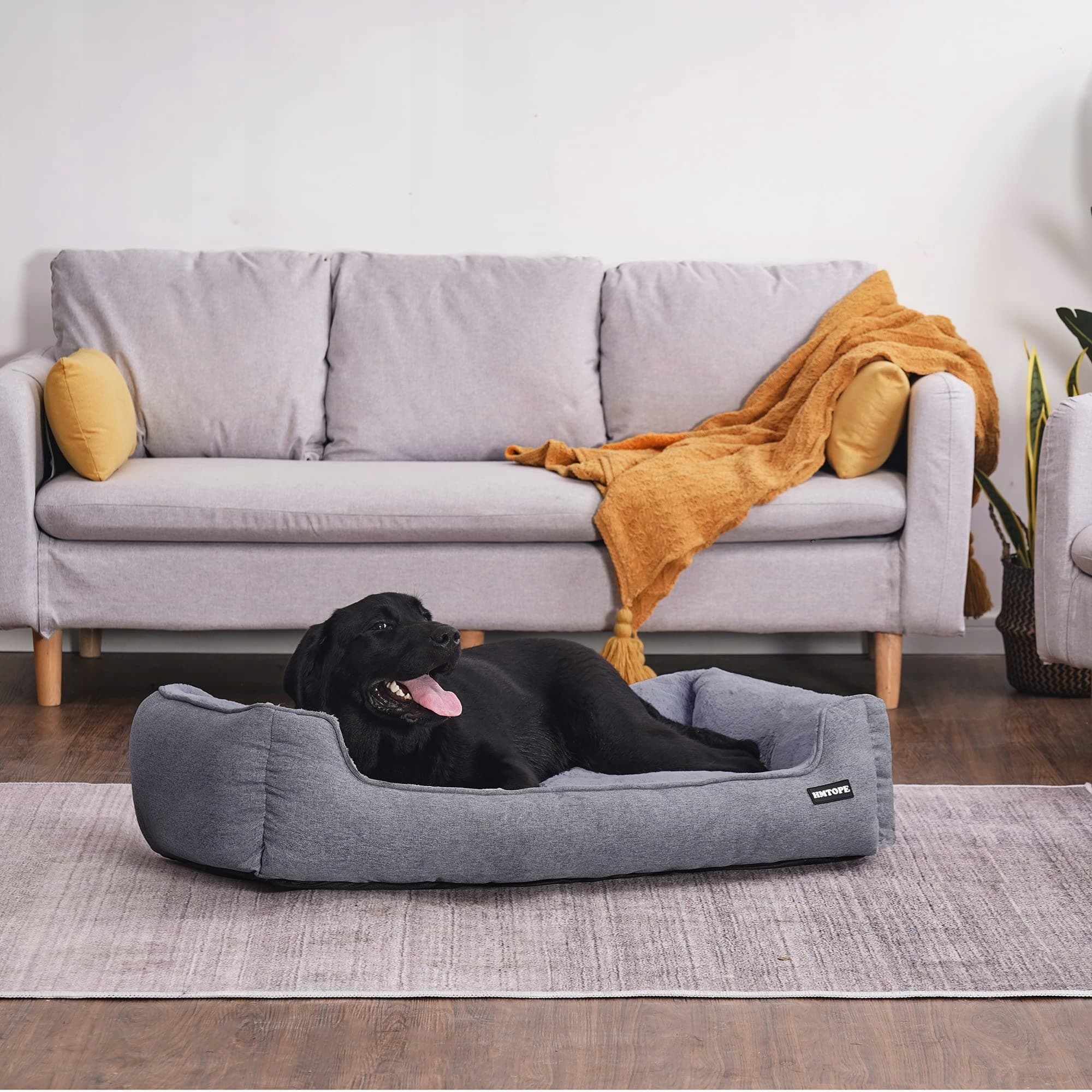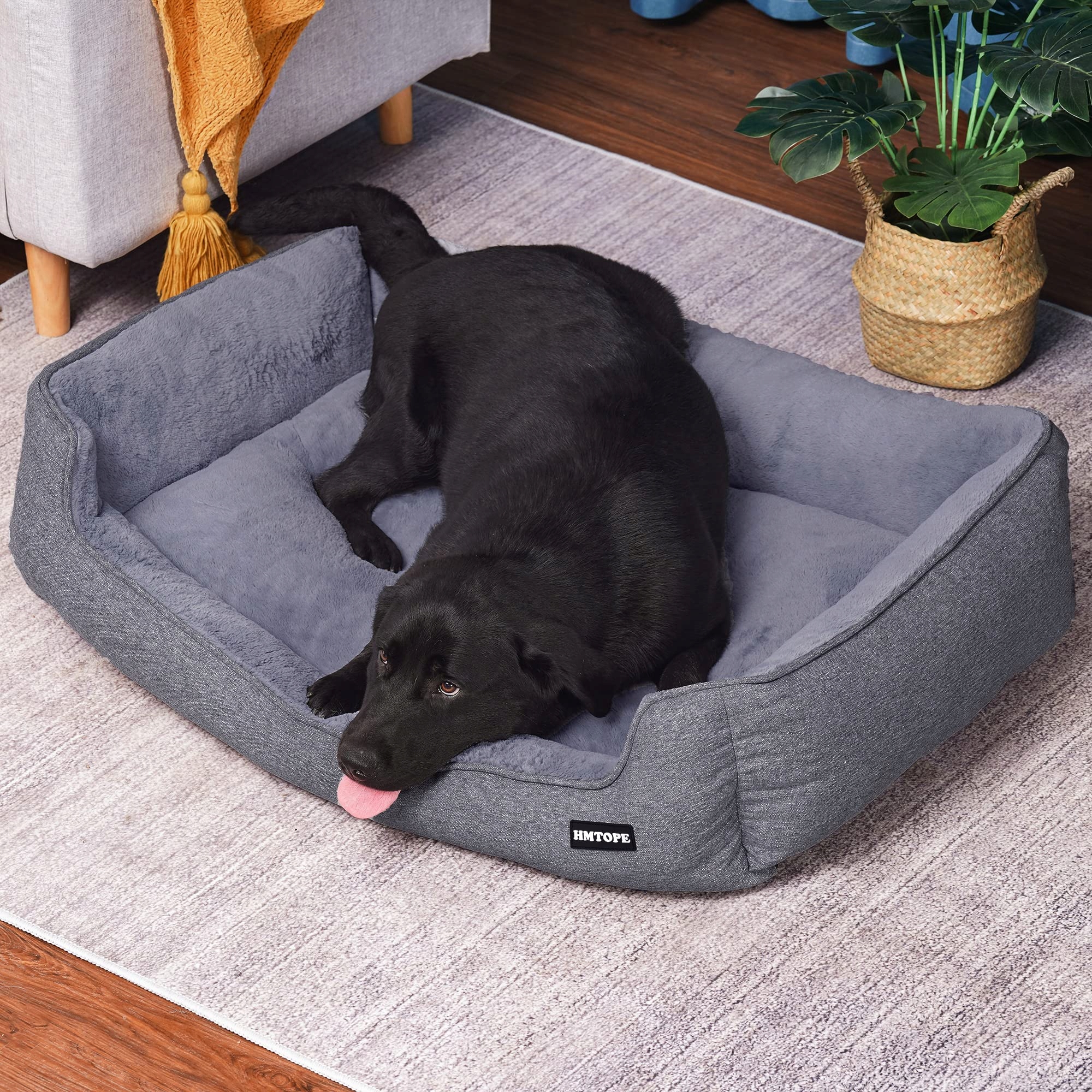 HMTOPE Legowisko dla psa, sofa dla psa, poduszka dla psa, koszyk dla psa zdejmowany i nadający się do prania, jasnoszary, 110 x 86 x 26 cm