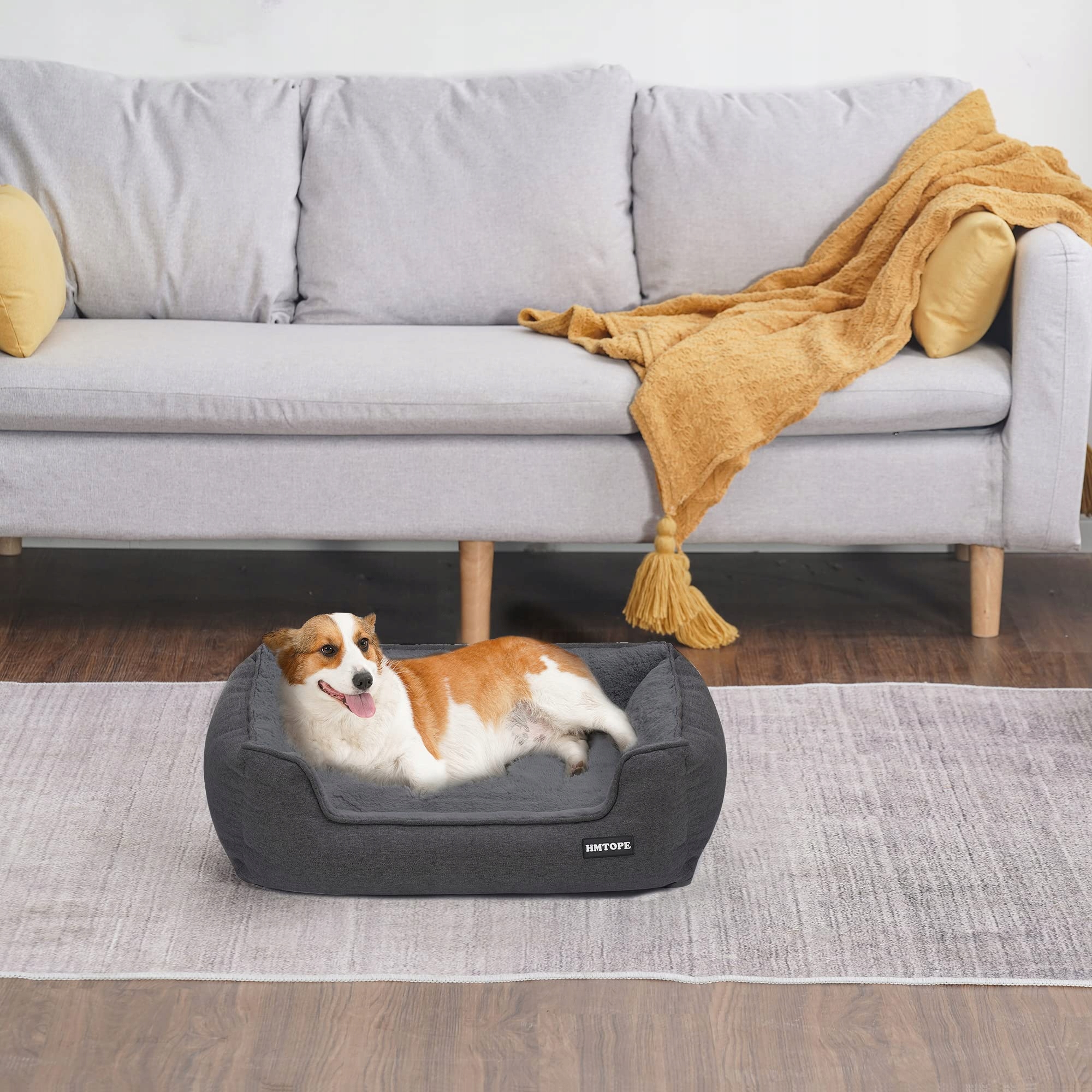 HMTOPE Legowisko dla psa, sofa dla psa, poduszka dla psa, koszyk dla psa zdejmowany i nadający się do prania, ciemnoszary, 90 x 75 x 25 cm