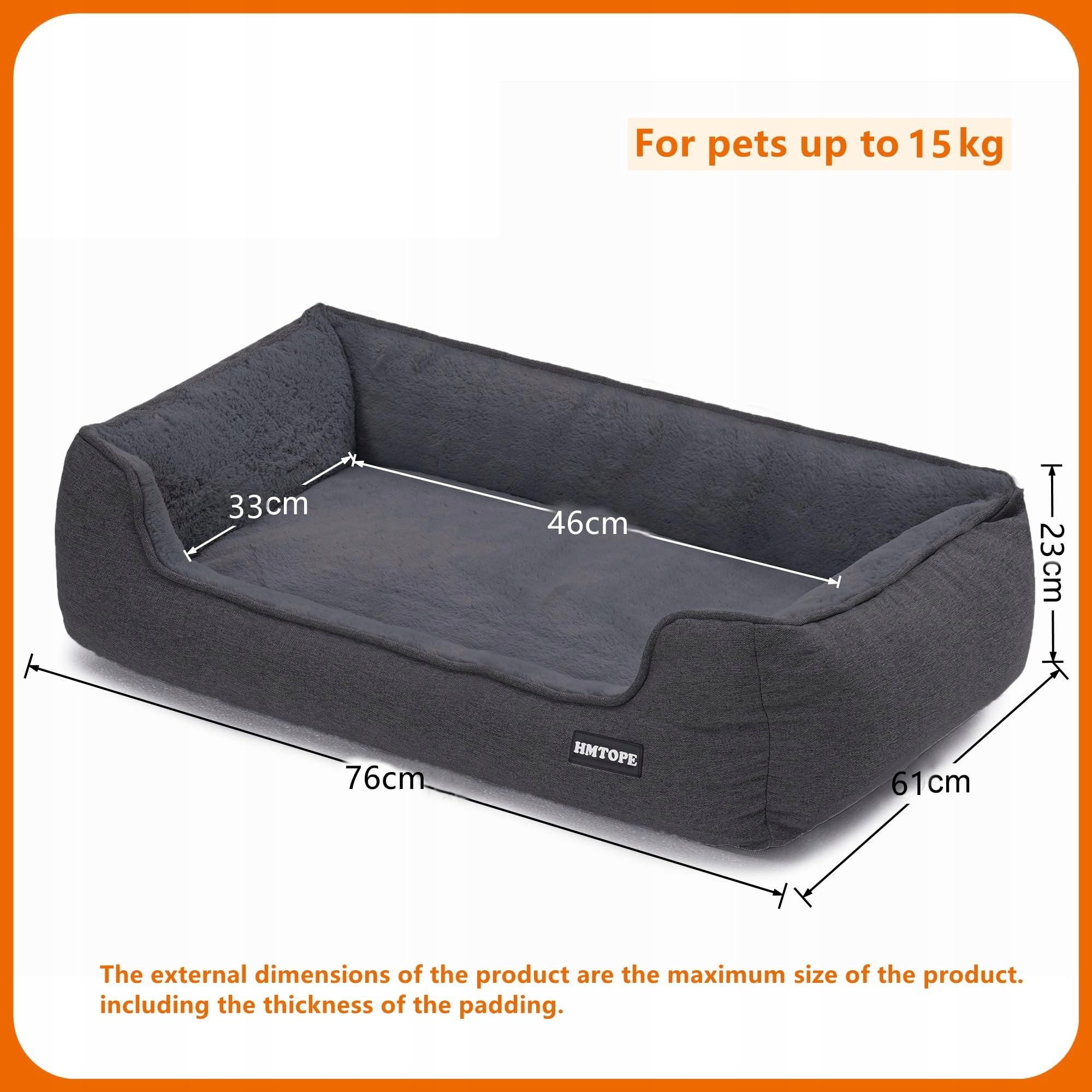 HMTOPE Legowisko dla psa, sofa dla psa, poduszka dla psa, koszyk dla psa zdejmowany i nadający się do prania, ciemnoszary, 76 x 61 x 23 cm