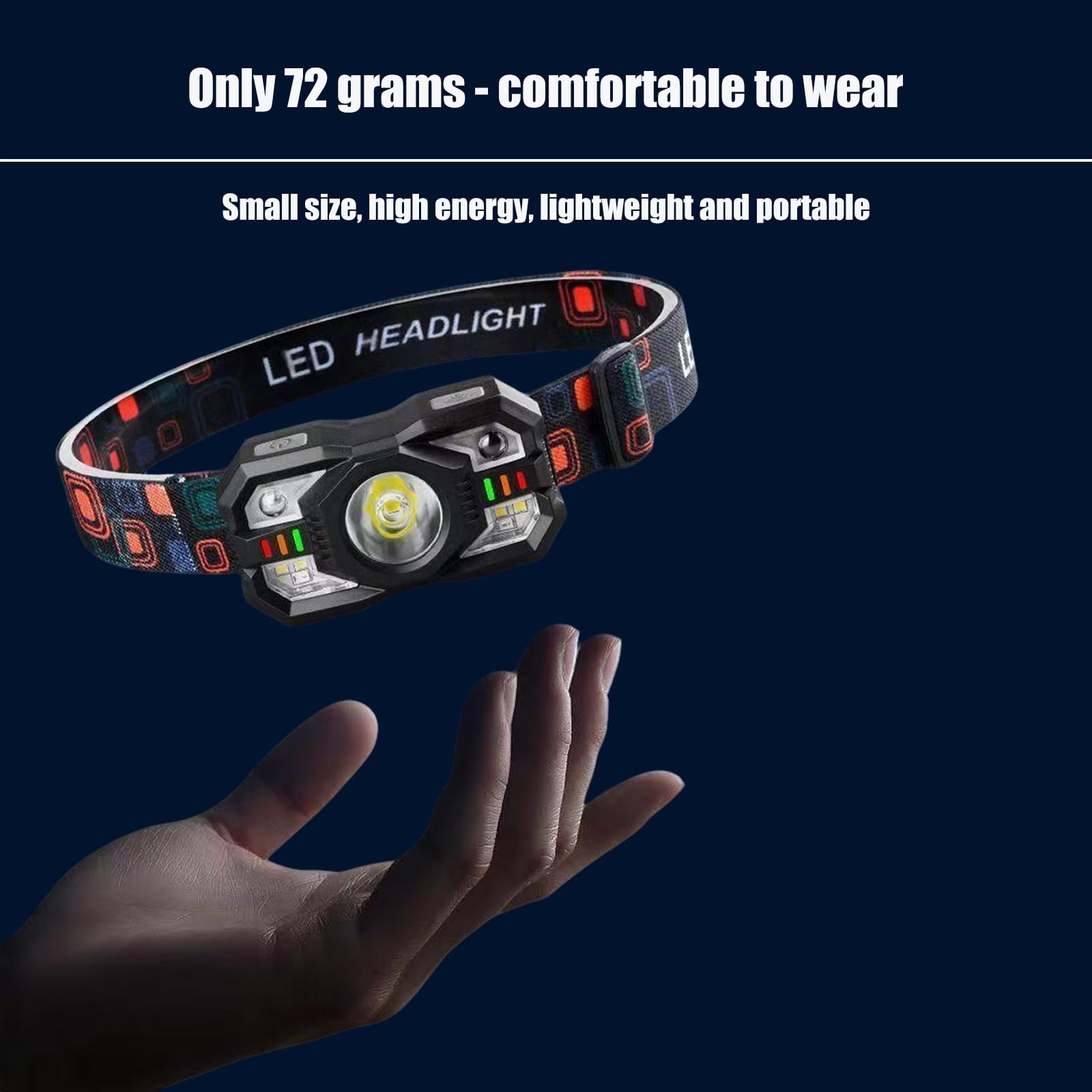 Przedstawiamy naszą lampę czołową z czujnikiem – idealnego towarzysza wszystkich Twoich przygód na świeżym powietrzu! Dzięki kompaktowym rozmiarom 47,5x4,5 cm i lekkiego materiału ABS ważącego zaledwie 80 gramów, ta lampa czołowa oferuje komfort i wygodę jak żadna inna.