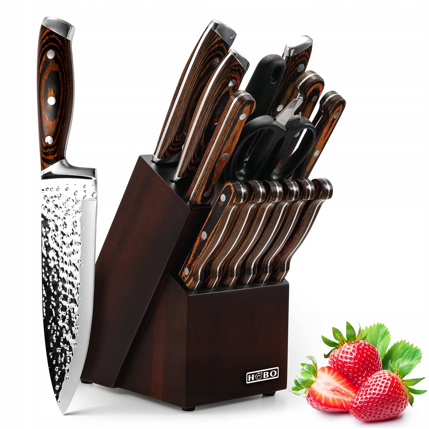 HOBO Zestaw Noży Kuchennych 15 Sztuk Japońska Stal Drewniana Rączka