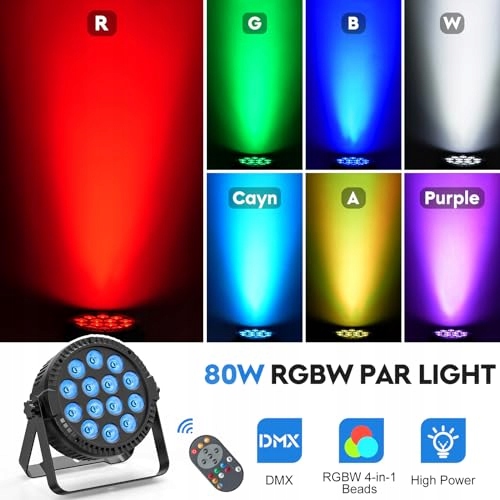 ✨【84W RGBW Oświetlenie Sceniczne】LED Par oświetlenie sceniczne wykorzystuje wysokowydajne diody LED RGBW 4-w-1. Połączenie 14x6W wielokolorowych diod LED pozwala łatwo stworzyć atmosferę imprezy!