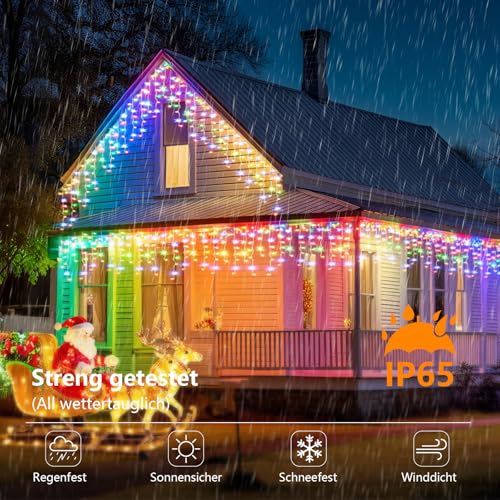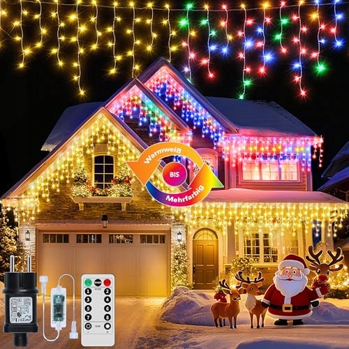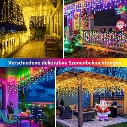 🌟【3 w 1 zmiana koloru za pomocą przycisku】 Innowacyjna koncepcja 3 w 1 kolorów: zewnętrzna girlanda z efektem lodowego deszczu swobodnie przełącza się między „stałym ciepłym światłem” (przytulna atmosfera na wieczory bożonarodzeniowe/rodzinne spotkania), „stałym kolorowym światłem” (żywa atmosfera na imprezy/urodziny) oraz „naprzemiennym miganiem ciepło-kolorowym” (dynamiczny efekt na zdjęcia świąteczne/dekoracje ogrodowe). Jeden klik = 3 style dekoracji, oszczędne i różnorodne.