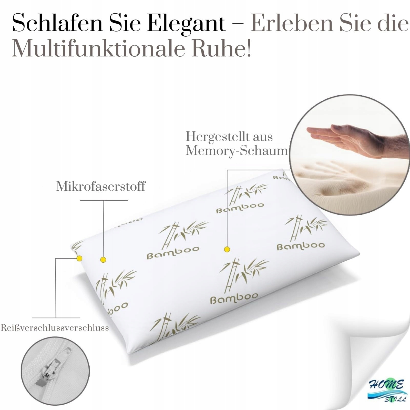 HOME STILL Memory Foam Poduszka na głowę, 2 sztuki, 70x40x12 cm, wzór bambusowy, mikrofibrowa poszewka, podparcie szyi, ergonomiczna, oddychająca, nadająca się do prania w pralce, nadająca się do suszarki