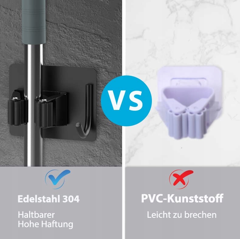 homeasy Uchwyt na miotły na ścianę 4 sztuki Uchwyt samoprzylepny ze stali nierdzewnej Uchwyt na mopy do kuchni, łazienki, ogrodu (Czarny)