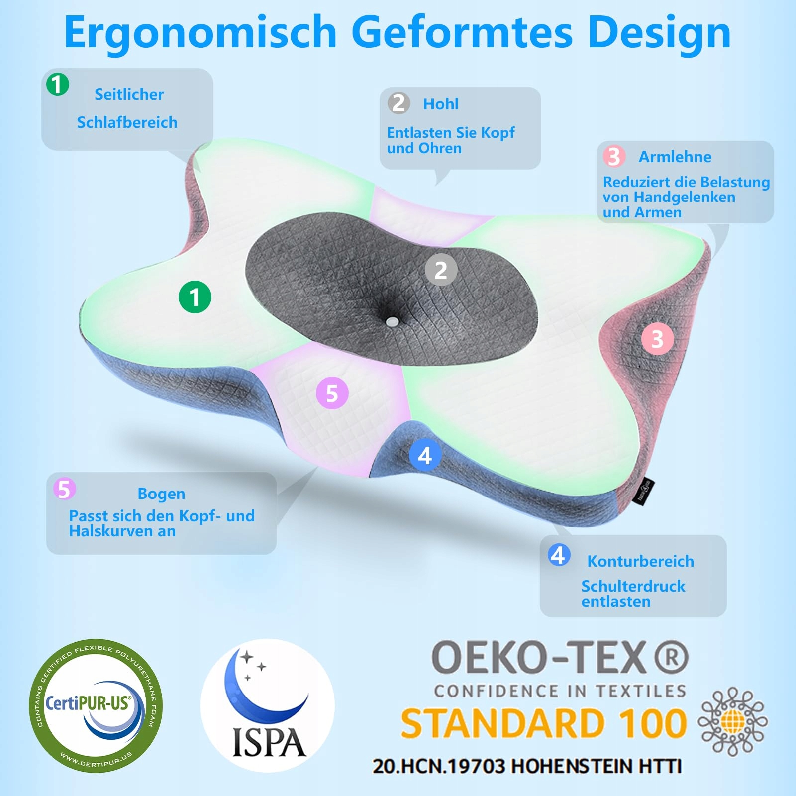 【Ergonomiczna Poduszka】Nasza poduszka na szyję ma ergonomiczny kształt, który imituje formę poduszki z pianki memory, skutecznie podtrzymując głowę, szyję, ramiona i plecy, co może skutecznie złagodzić problemy ze snem.