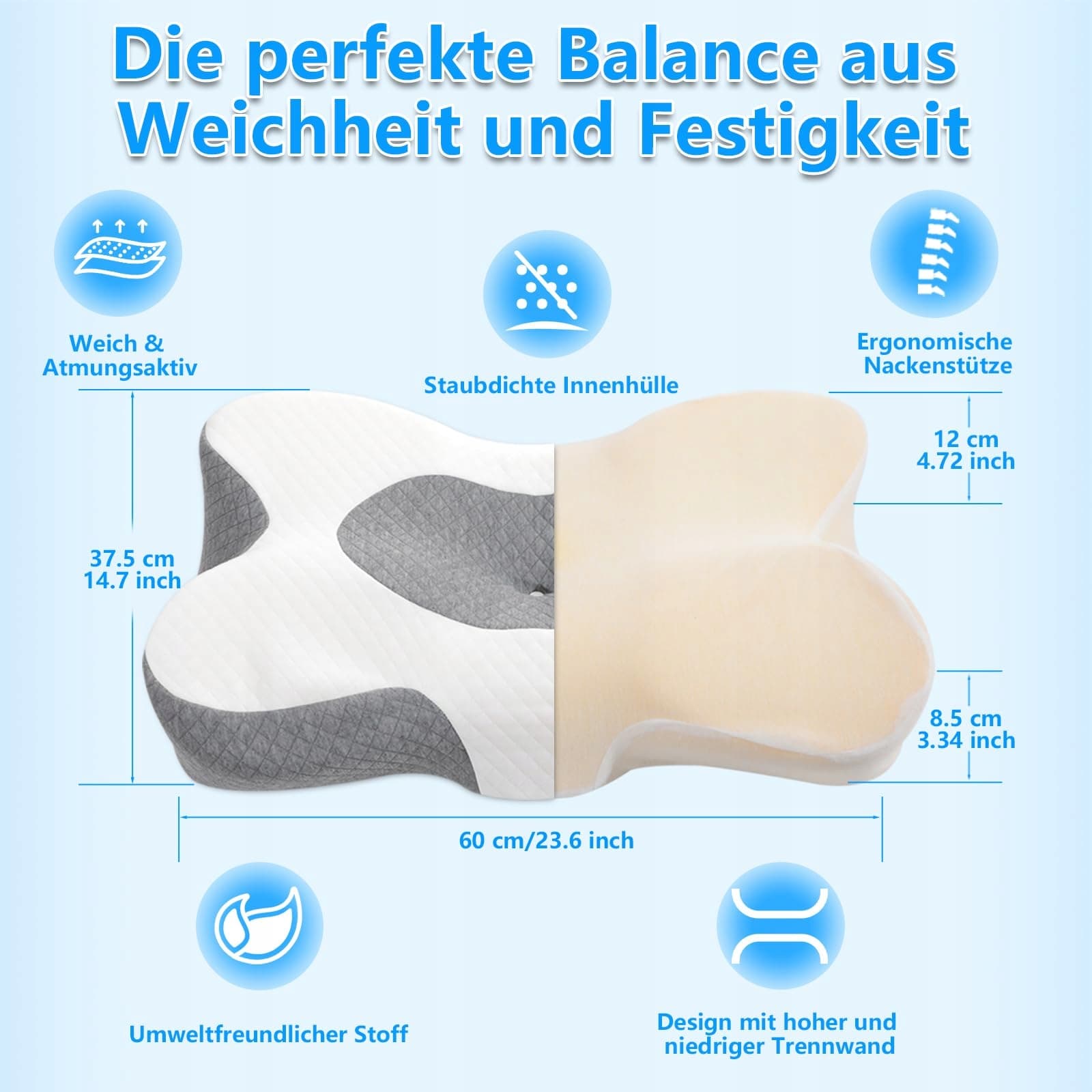 【Wysokiej Jakości Pianka Memory】Nasza poduszka z pianki memory wykonana jest z wysokiej jakości pianki memory, która może rozluźnić mięśnie głowy, szyi, ramion i pleców, złagodzić ból oraz dopasować się do kształtu ciała i głowy dla optymalnego komfortu.