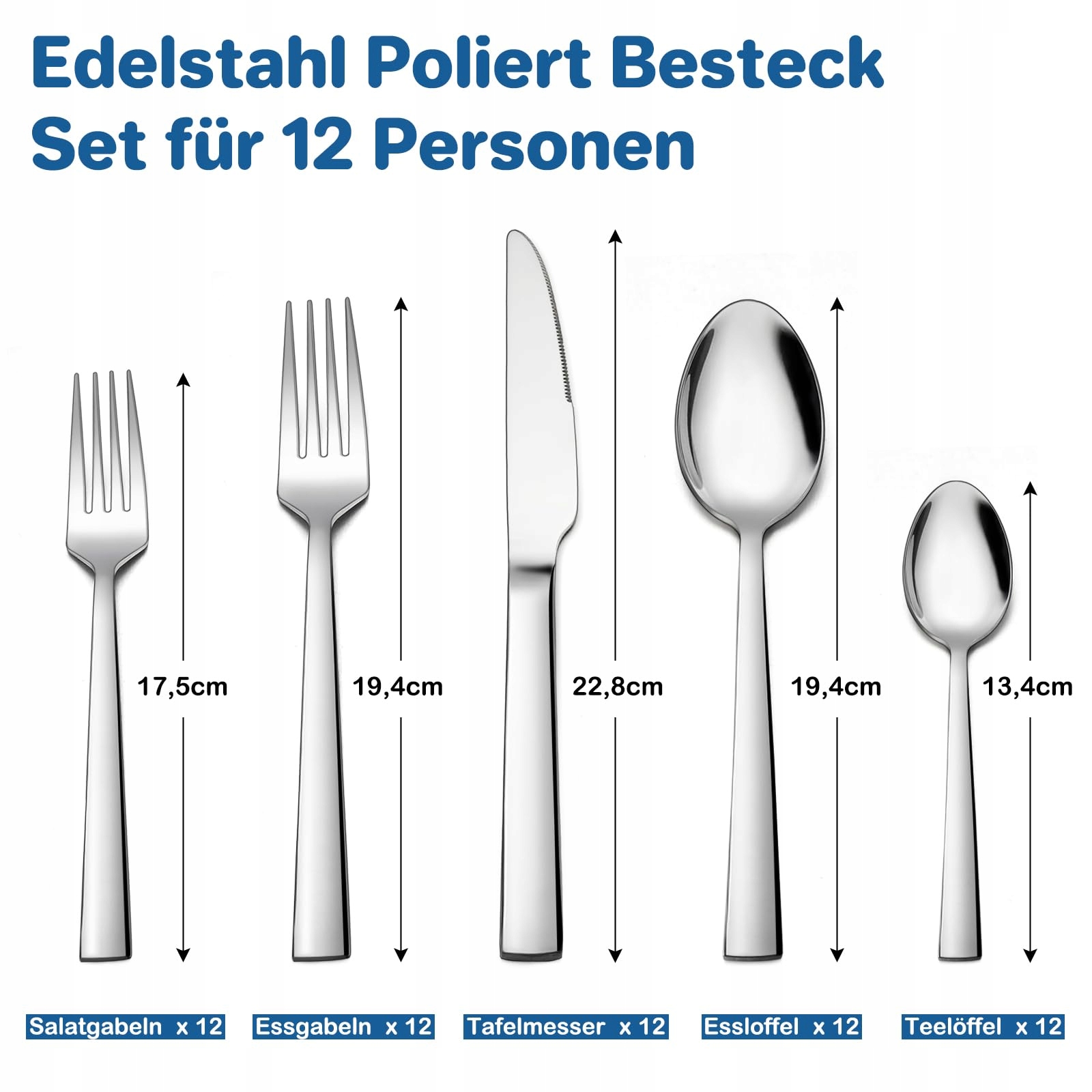 HOMIKIT Zestaw Sztućców 12 Osób 60 Części Stal Nierdzewna Zmywarka | Premium Supply