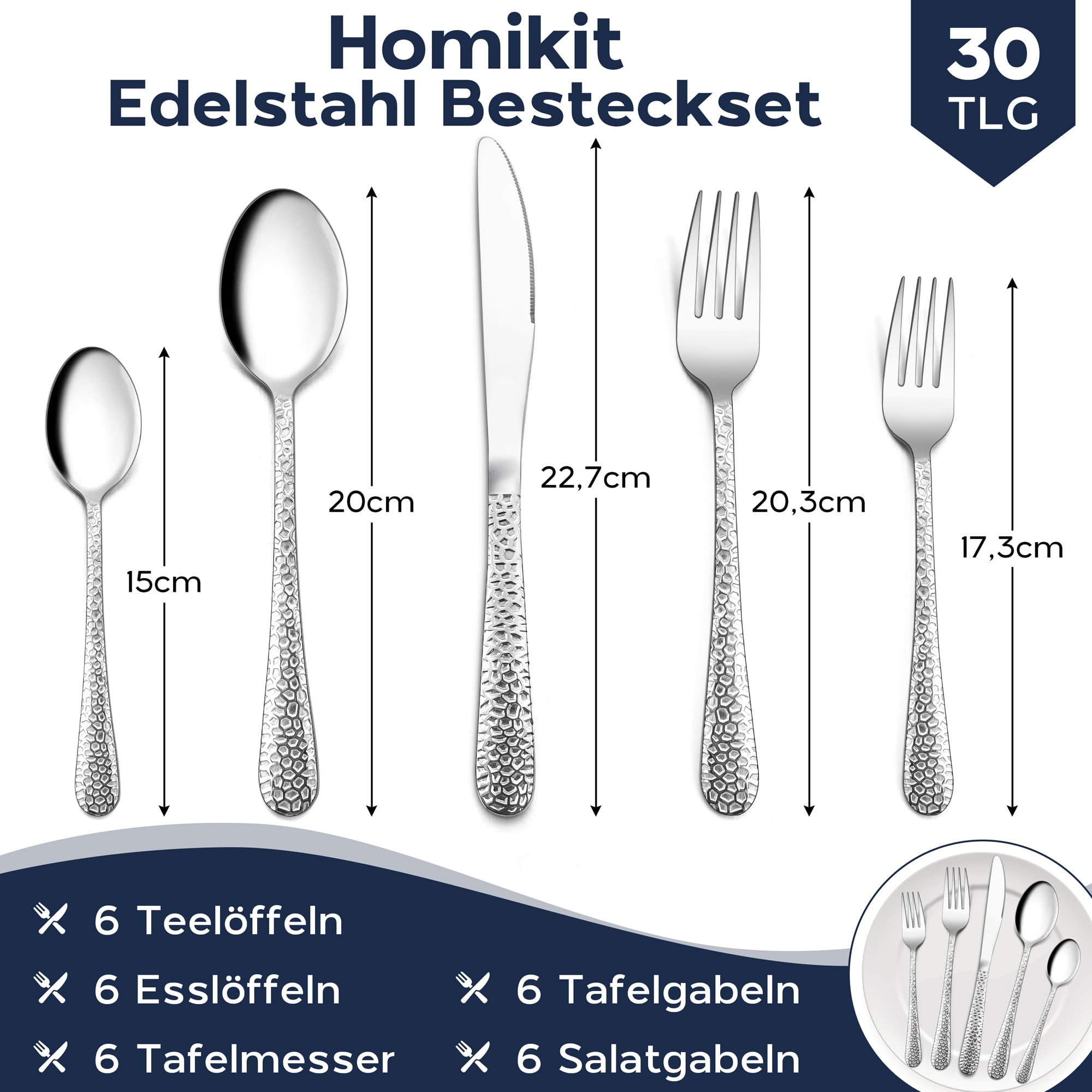 HOMIKIT Zestaw Sztućców 30 Częściowy Stal Nierdzewna Na 6 Osób