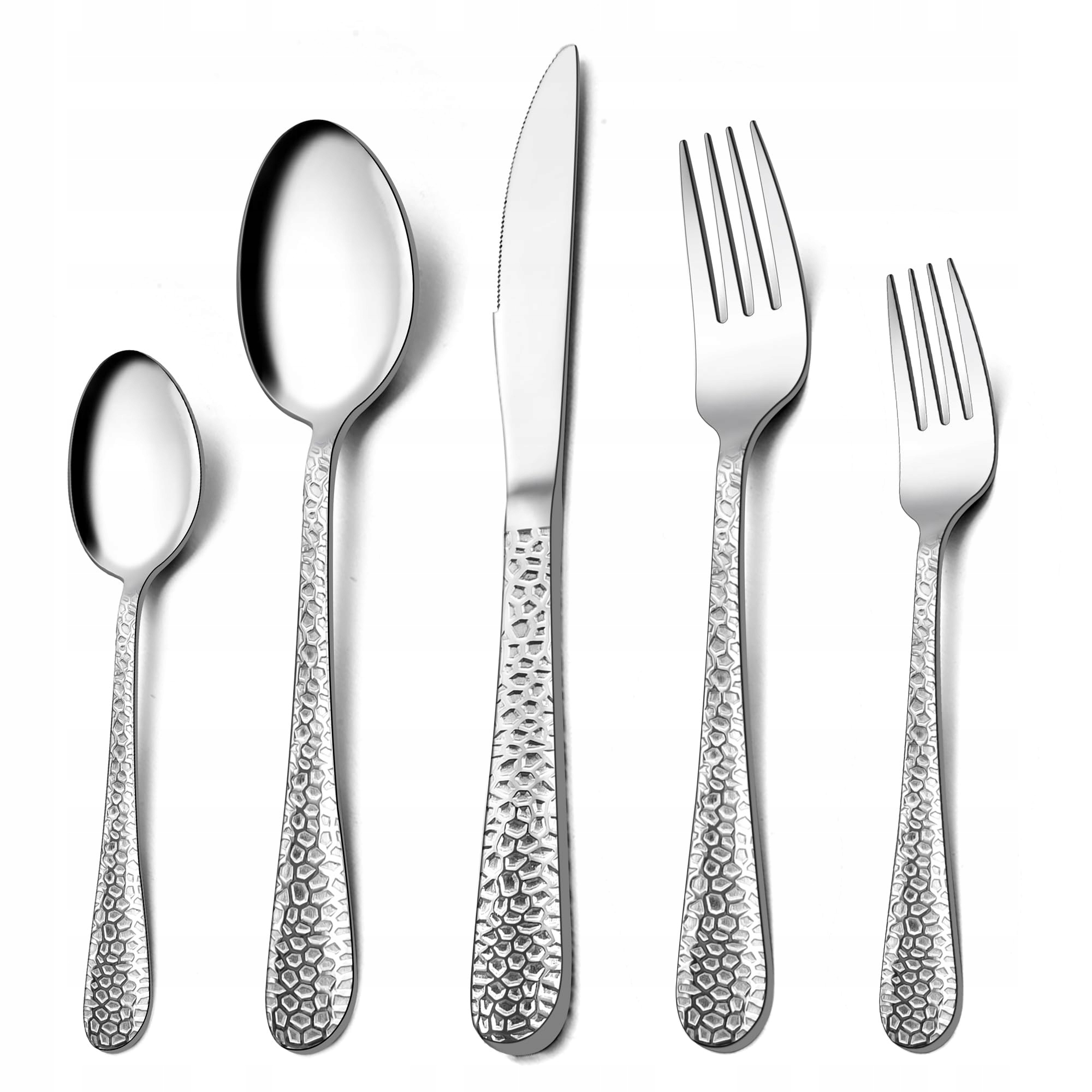 Zestaw sztućców Homikit, 30-częściowy zestaw sztućców dla 6 osób, młotkowana stal nierdzewna, sztućce z nożem, widelcem i łyżką dla rodziny, imprezy, restauracji, zaokrąglone uchwyty i nadające się do mycia w zmywarce
