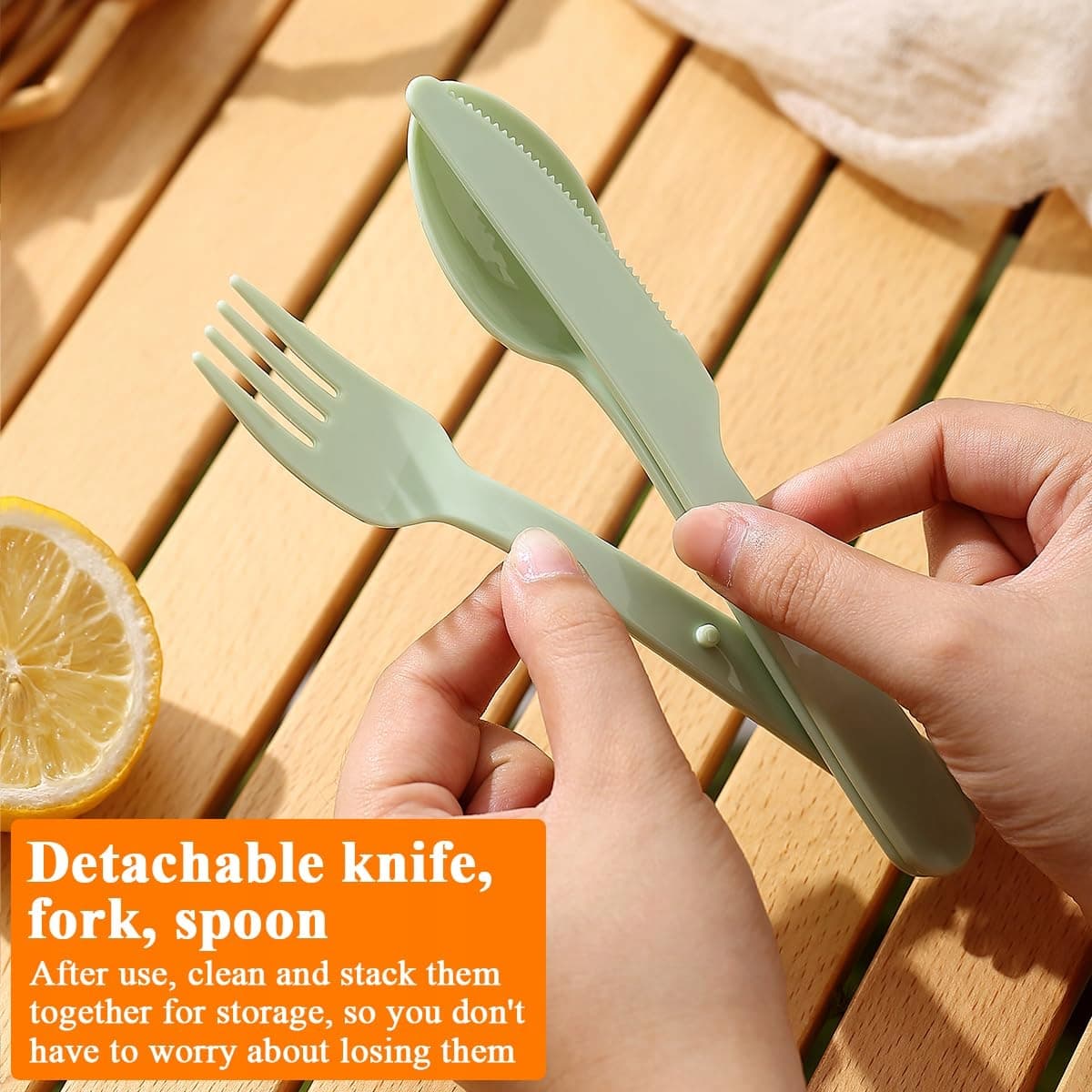 Wygodny w użyciu i łatwy do czyszczenia: Dzięki ergonomicznym uchwytom zapewniającym komfortowy chwyt, te sztućce sprawiają, że jedzenie na świeżym powietrzu jest dziecinnie proste. Ponadto gładkie powierzchnie nadają się do mycia w zmywarce, co umożliwia szybkie i bezproblemowe czyszczenie po każdym posiłku.