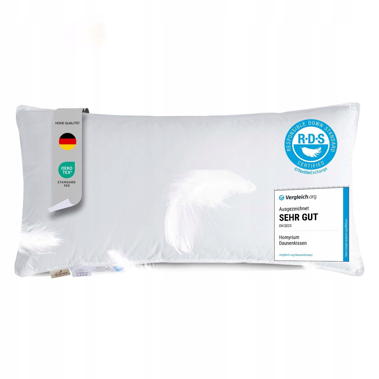 Homyrium Poduszka z pierza 40x80 Poduszka 40x80 Puchowa Poduszka z trzema komorami WYPEŁNIENIE: na zewnątrz 90% puchu / 10% piór; wewnątrz 100% piór, 100% bawełniany pokrowiec (800g, opakowanie 1 szt.)