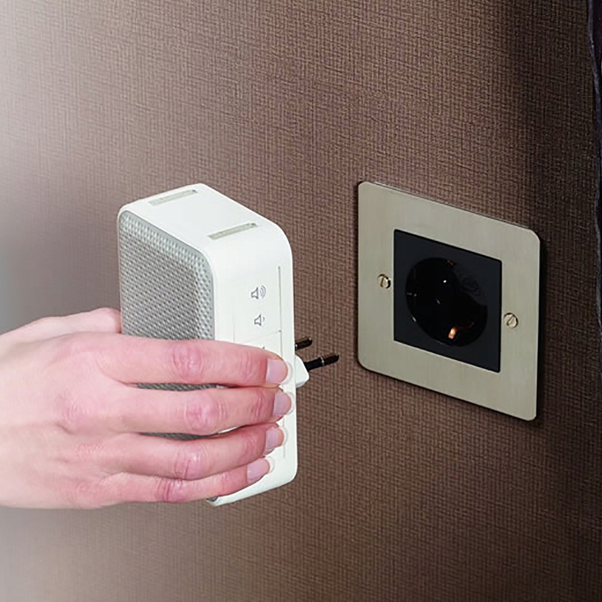 Łatwy do zainstalowania dzwonek: Wstępnie skonfigurowany (z ustawionym i połączonym bezprzewodowym przyciskiem dzwonka). Używaj go wszędzie tam, gdzie w Twoim domu znajduje się gniazdko sieciowe