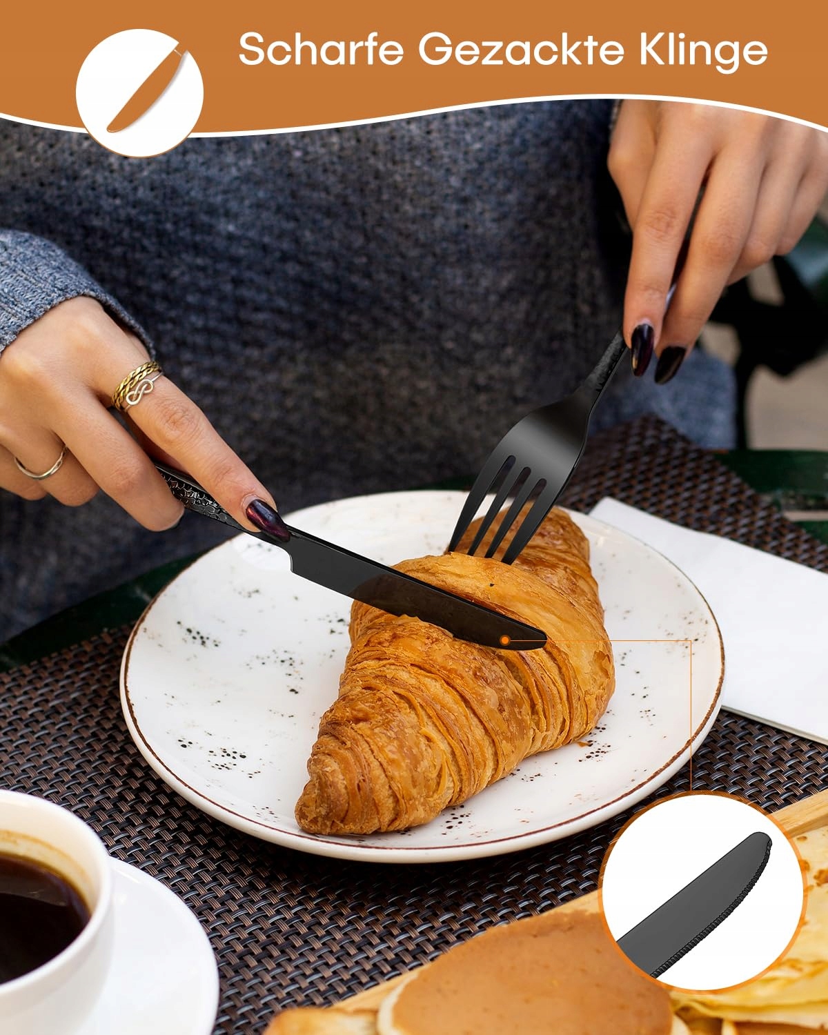 Doskonały wybór – zestaw sztućców wygląda stylowo i wysokiej jakości. Niezależnie od tego, czy do codziennego użytku rodzinnego, uroczystości czy jako wykwintny prezent, idealnie się komponuje, aby pokazać Twój wyjątkowy gust i styl życia. Jednocześnie młotkowane sztućce można łączyć z różnymi dekoracjami stołu, aby odzwierciedlić unikalny styl. Wyrazisty design i doskonała jakość zrobią głębokie wrażenie na Twoich gościach.