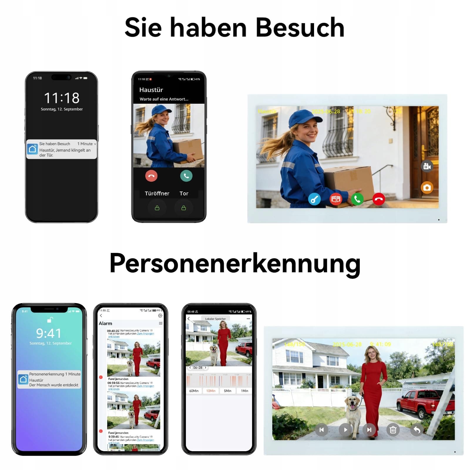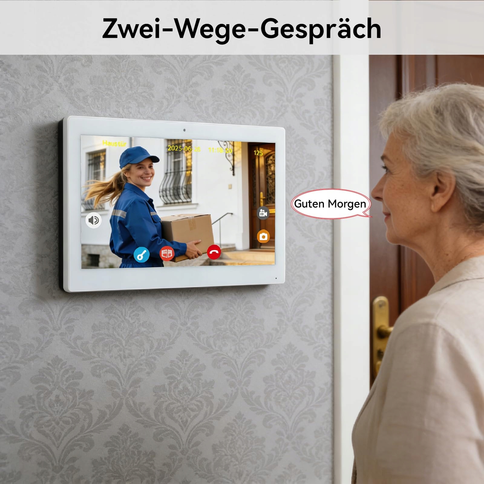 Większy 10,1-calowy ekran dotykowy IPS, dwukierunkowa rozmowa, monitoring, wyświetlanie czasu i pogody