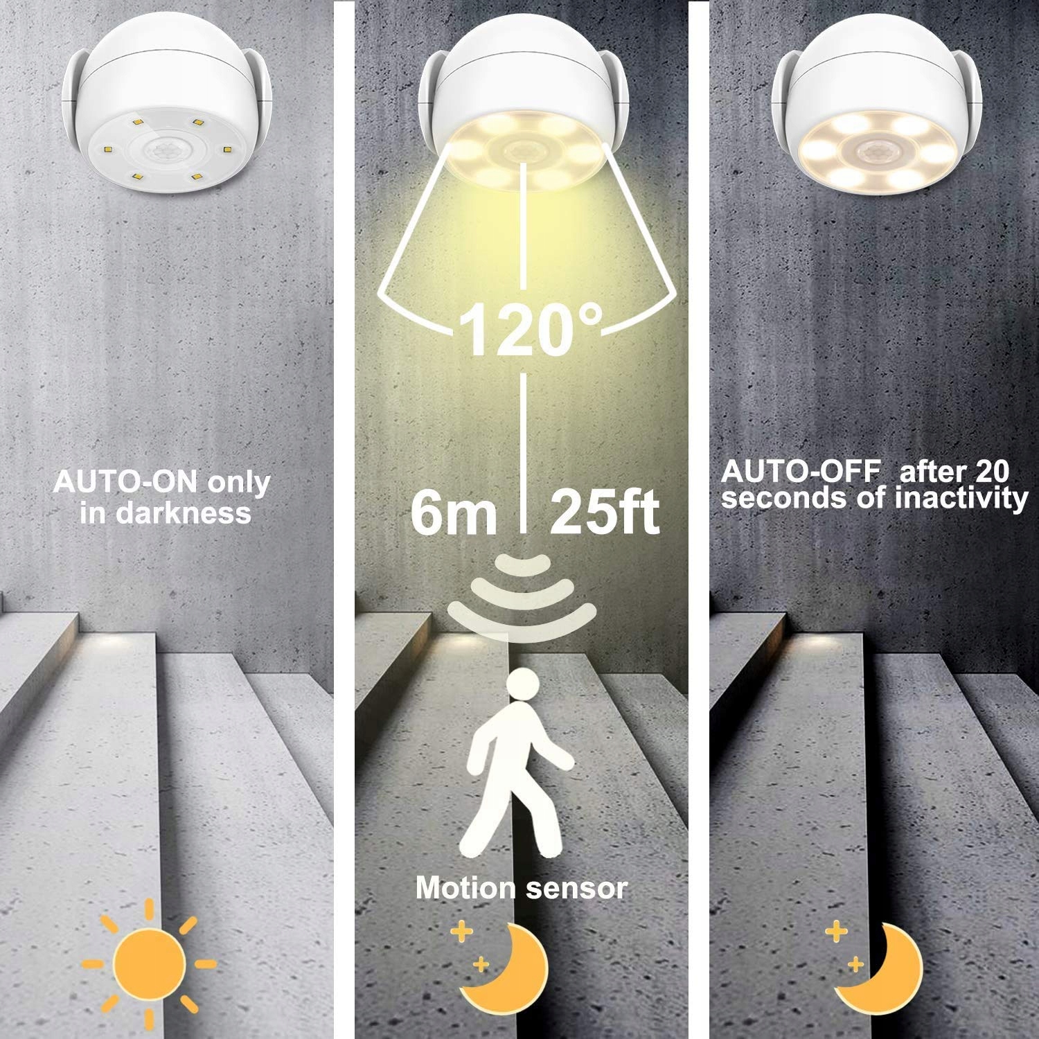 Szerokie zastosowanie - Ta jasna lampa ścienna bezpieczeństwa jest idealna do oświetlenia LED, lampy z czujnikiem ruchu do użytku wewnętrznego i zewnętrznego, światła aktywowanego ruchem, nocnej lampki z czujnikiem ruchu, światła prysznicowego, oświetlenia szopy, lampy na baterie, bezprzewodowego światła zewnętrznego, reflektora zewnętrznego, reflektora na baterie, oświetlenia korytarza, lampy sufitowej, oświetlenia werandy, lampy ściennej, światła bezpieczeństwa, oświetlenia schodów, lampy garażowej, oświetlenia tarasu itd.