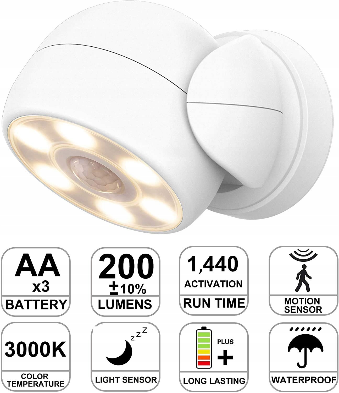 Lampa z czujnikiem ruchu zasilana bateriami - Zasilana 3 bateriami AA (nie dołączone), nie wymaga przewodów ani wiercenia.
