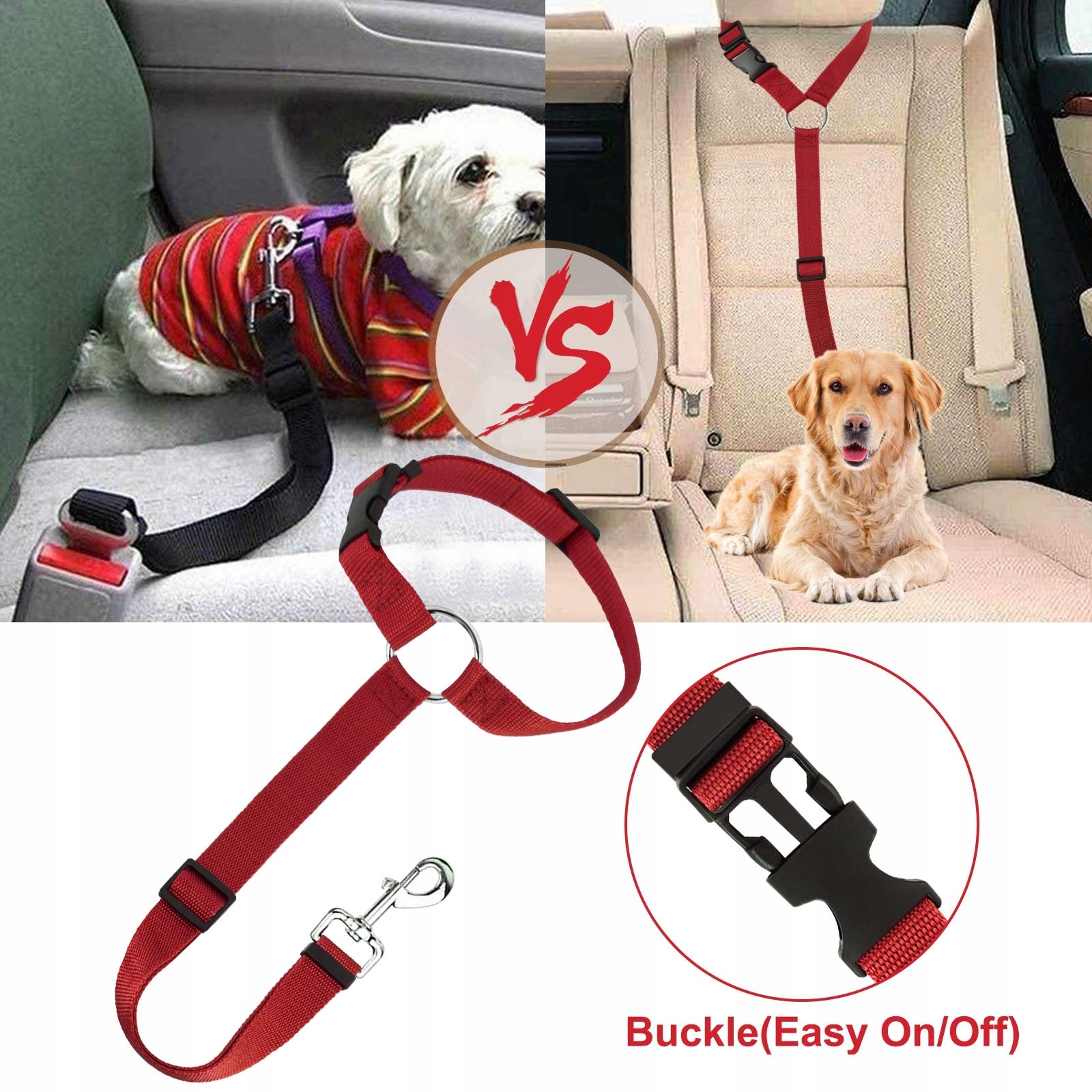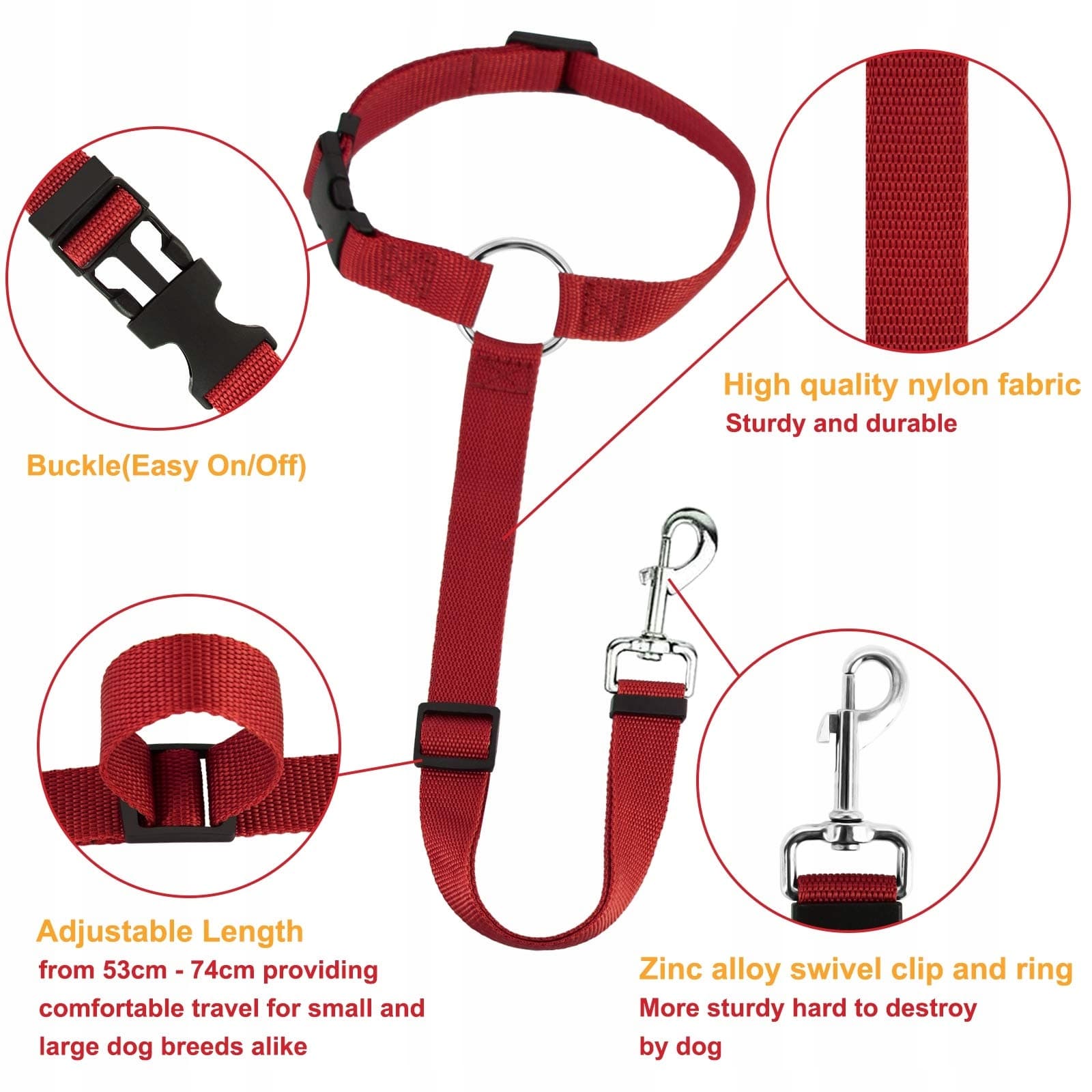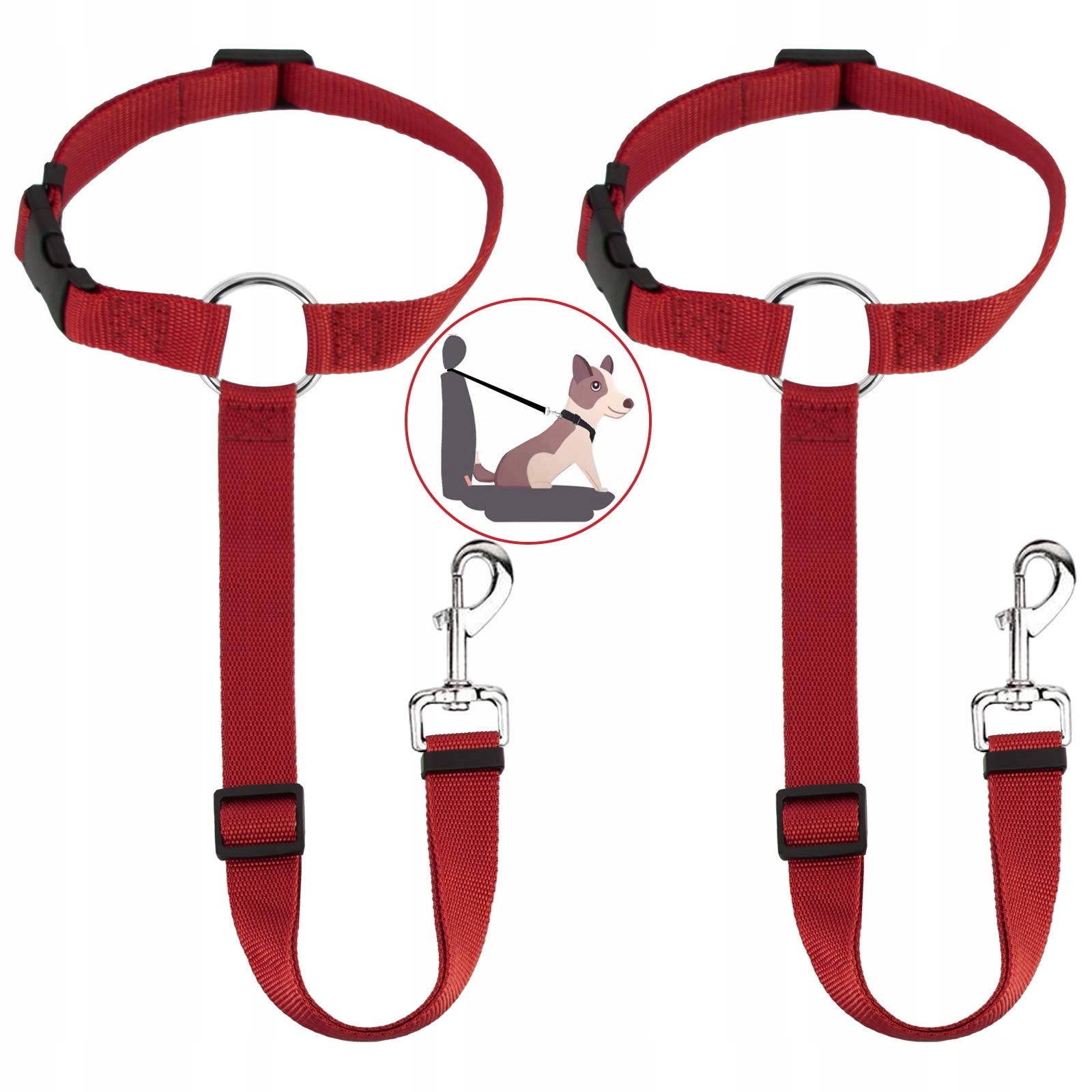 HONZUEN Uniwersalny Pas Samochodowy Dla Psów Regulowany Wielofunkcyjny Pas Bezpieczeństwa Dla Psów I Kotów Czerwony