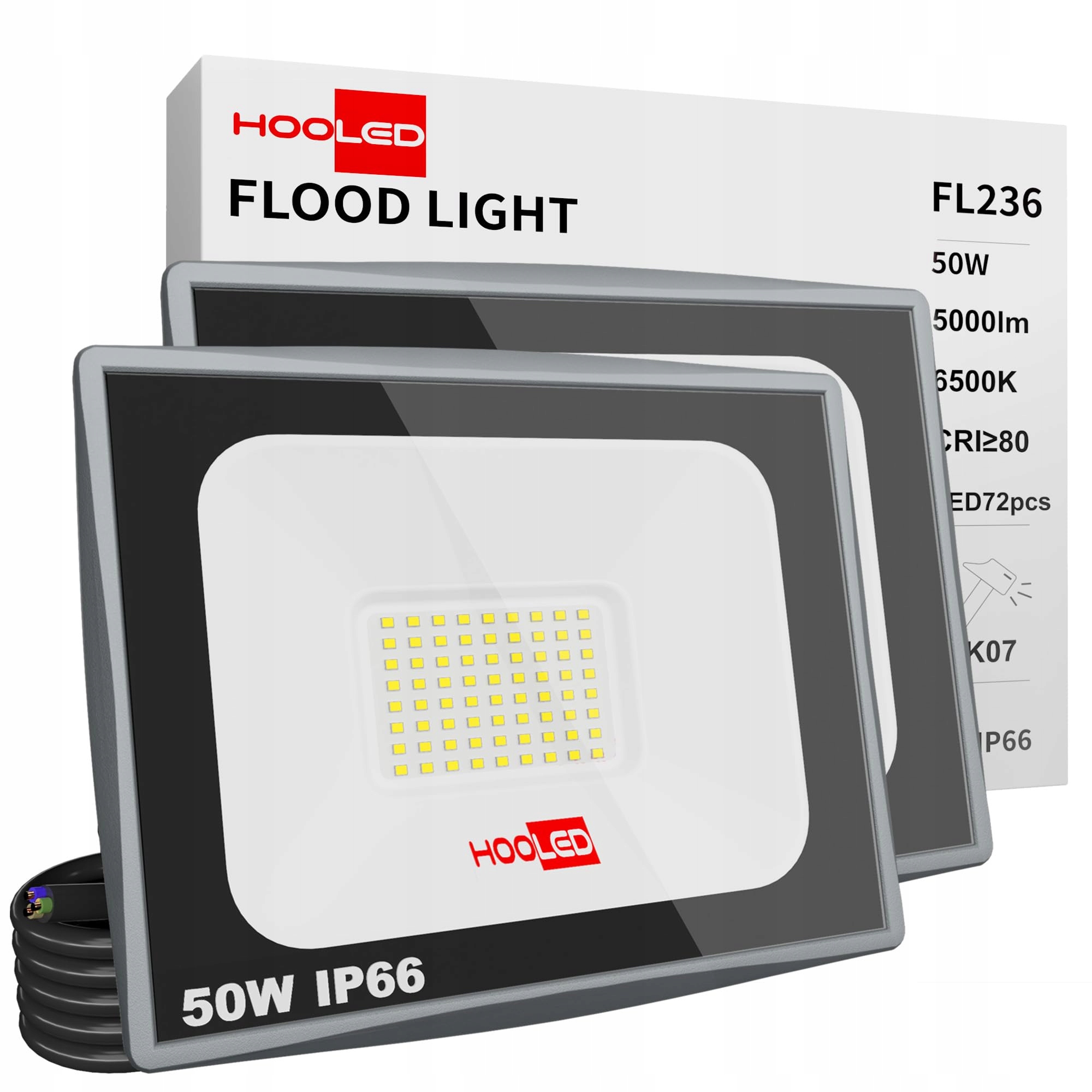 HOOLED Reflektor LED 50W na zewnątrz, 5000LM reflektor LED 230v, IP66 potlight, 6500K zimna biel lampa zewnętrzna kinkiet do reflektorów budowlanych ogród garaż podwórko ściana podwórko podjazd drzwi korytarz (50w, 2)