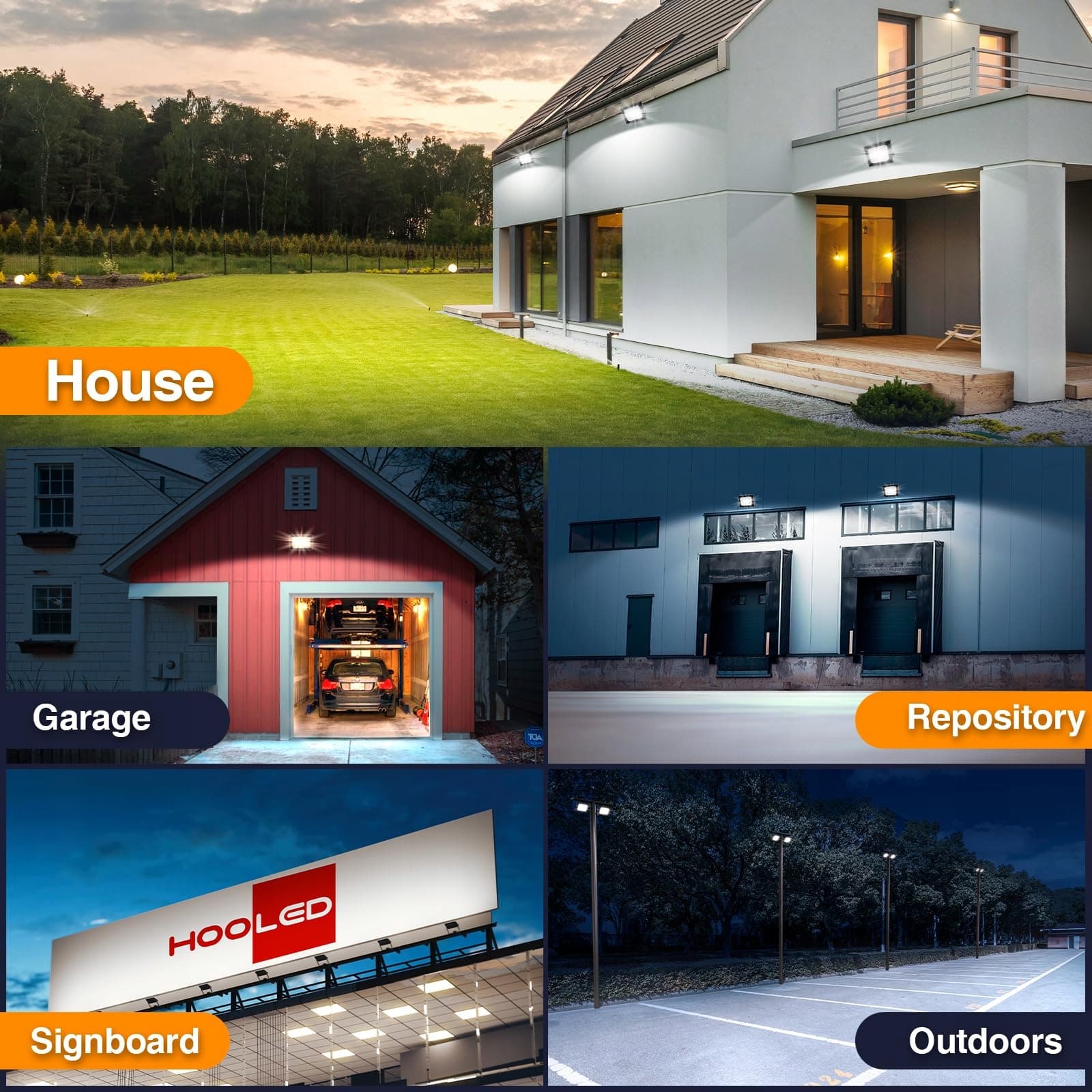 【Szerokie zastosowanie】Nasze lampy zewnętrzne LED są wszechstronne i nadają się do różnych środowisk. Dzięki klasie wodoodporności IP65 mogą być używane zarówno w suchych, jak i wilgotnych miejscach. Idealnie nadają się do oświetlenia wewnętrznego i zewnętrznego oraz doskonale sprawdzają się na boiskach do koszykówki, stadionach, halach magazynowych, ogrodach, tarasach, garażach, dachach, parkingach, placach i nabrzeżach.