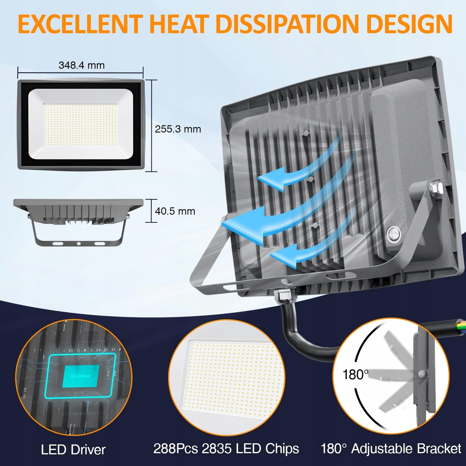 【Doskonała wydajność】HOOLED 200W reflektor LED jest wyposażony w 288 bardzo jasnych diod SMD2835 i oferuje 20000 lumenów z CRI80+ oraz dzienną temperaturą barwową 6500K. Kąt świecenia 120° zapewnia szerokie pokrycie. Te reflektory LED zmniejszają zużycie energii o ponad 90% w porównaniu z tradycyjnymi reflektorami LED na zewnątrz, dzięki czemu są idealne do oświetlenia zewnętrznego w miejscach wymagających dużej jasności.