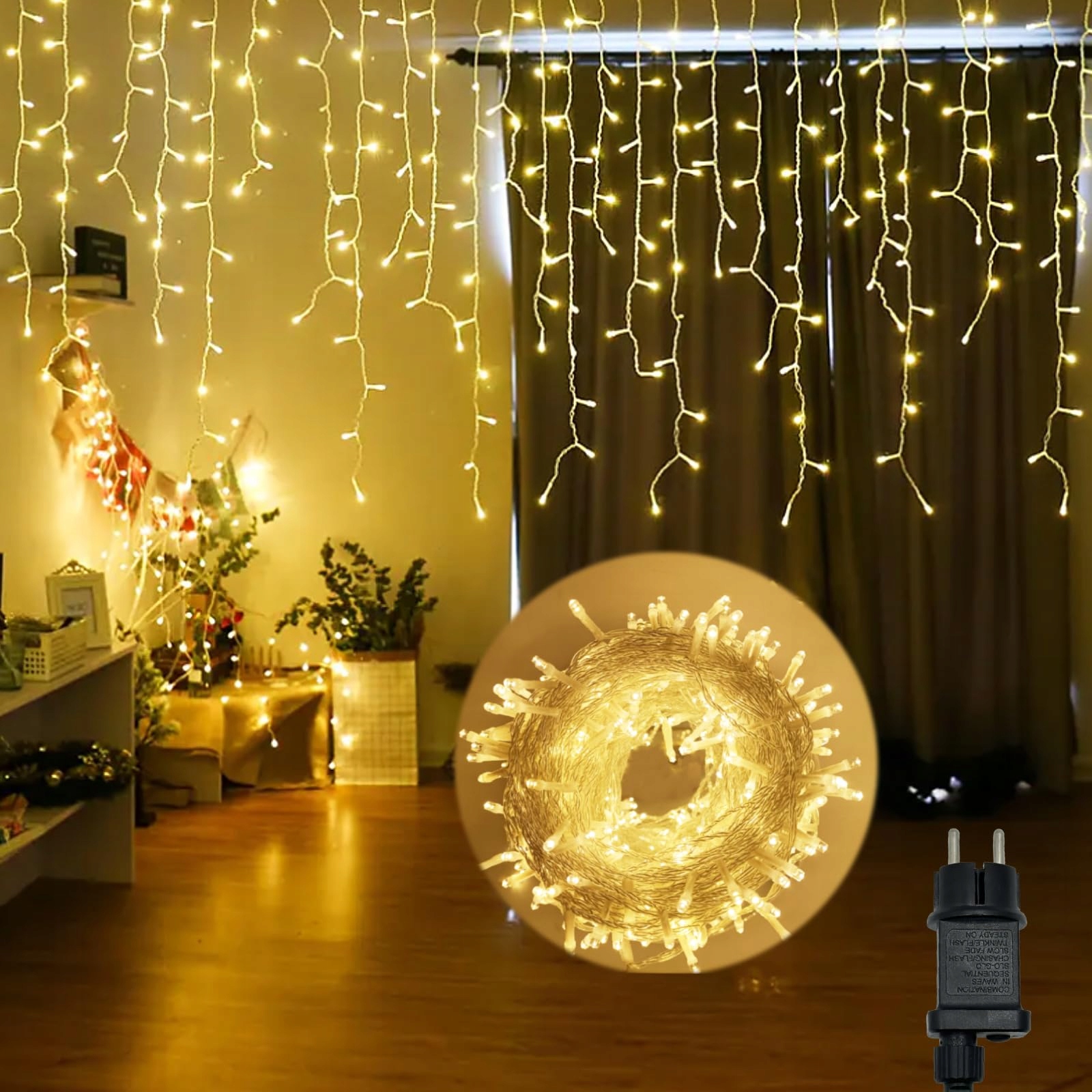 Hopelit Eisregen łańcuch świetlny na zewnątrz 10m 400LED ciepła biel, łańcuch świetlny choinkowy z timerem i funkcją pamięci do użytku wewnętrznego i zewnętrznego na ślub, chrzest, Boże Narodzenie, schody itp.