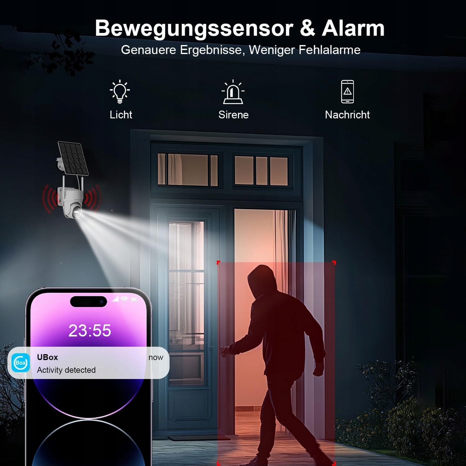 Natychmiastowe powiadomienia i dwukierunkowe audio: Po wykryciu ruchu czujnik PIR natychmiast wysyła alarm na Twój smartfon. Dzięki dwukierunkowemu audio możesz bezpośrednio rozmawiać z gośćmi lub potencjalnymi intruzami.