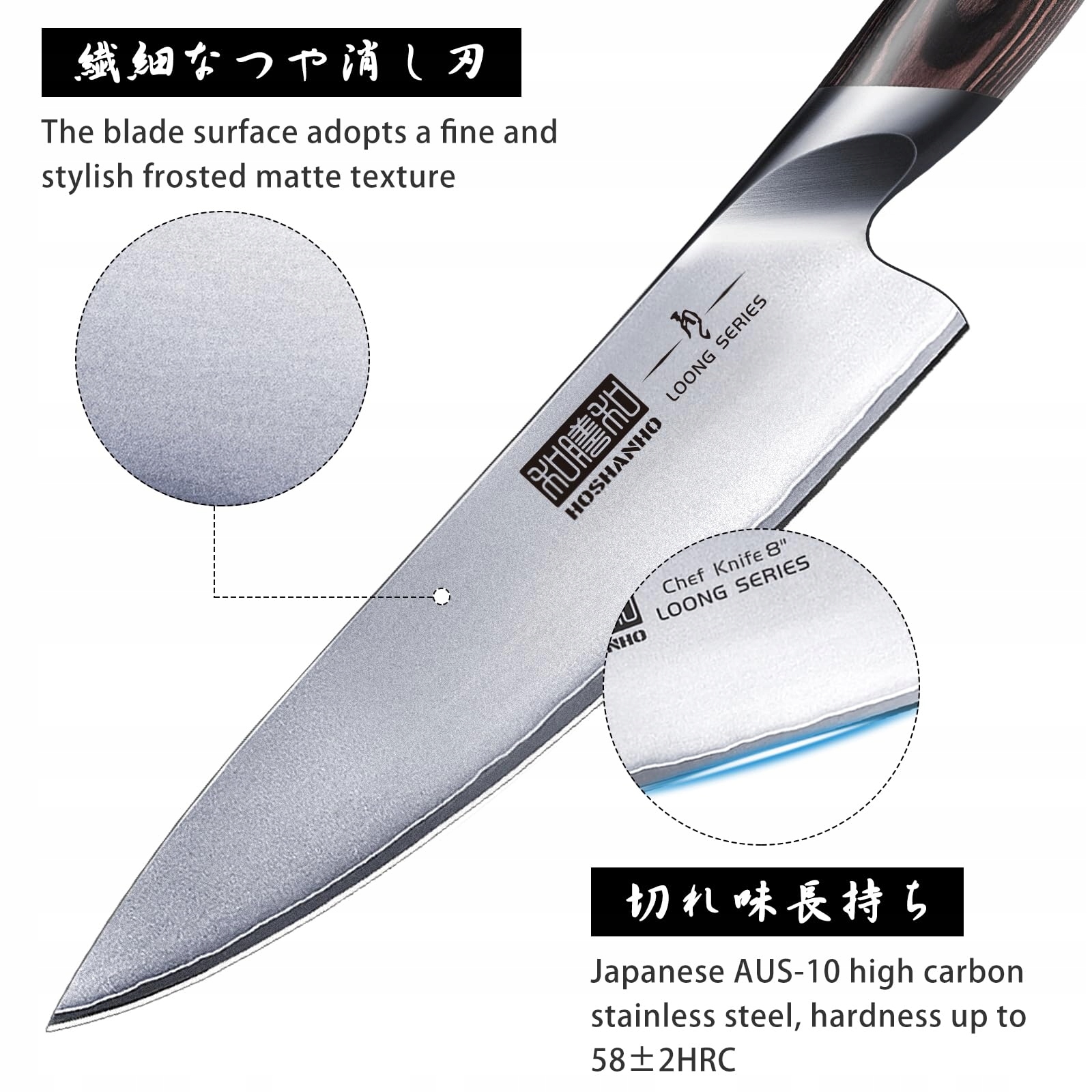 HOSHANHO Zestaw Noży Kuchennych 8 Sztuk Profesjonalny Z Drewnianym Blokiem