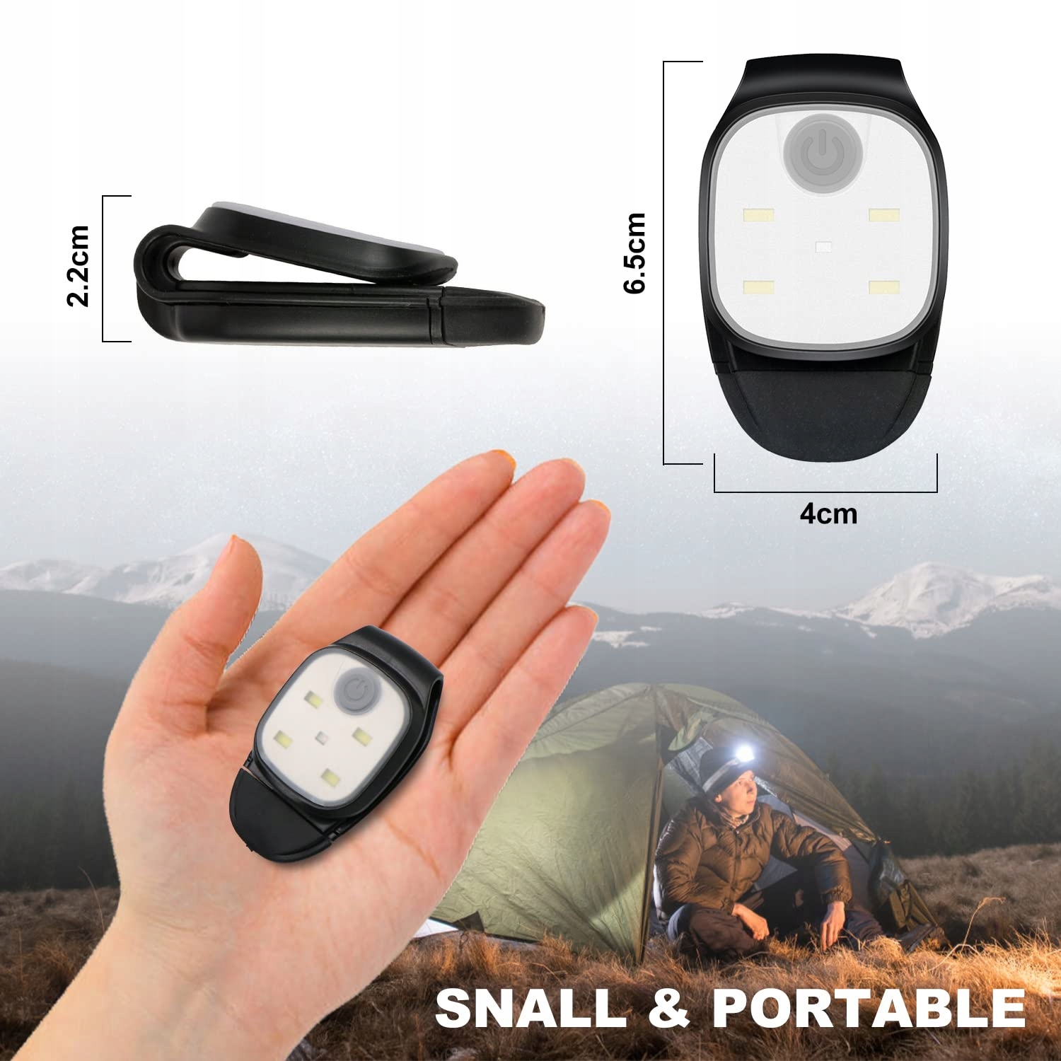 【Mały rozmiar i wodoodporność】Lampa clip ma około 7x4x2 cm, jest lekka, nie zajmuje miejsca, ale jest jasna, nie martw się o efekty świetlne. Reflektory mają klasę ochrony IPX4 i mogą być używane w deszczowe dni. Nie bój się deszczu i śniegu!