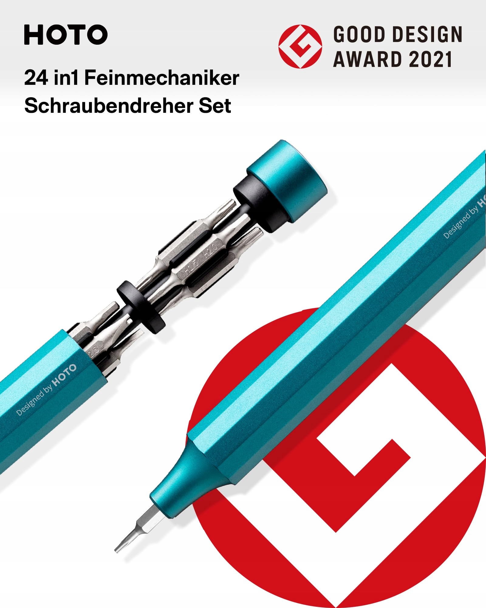 Zestaw wkrętaków precyzyjnych HOTO Feinmechaniker, 24 w 1, magnetyczne bity wkrętakowe, zestaw mini narzędzi wkrętakowych do telefonów, laptopów, komputerów, okularów, zegarków, mały 12 cm×1.66 cm, zielony