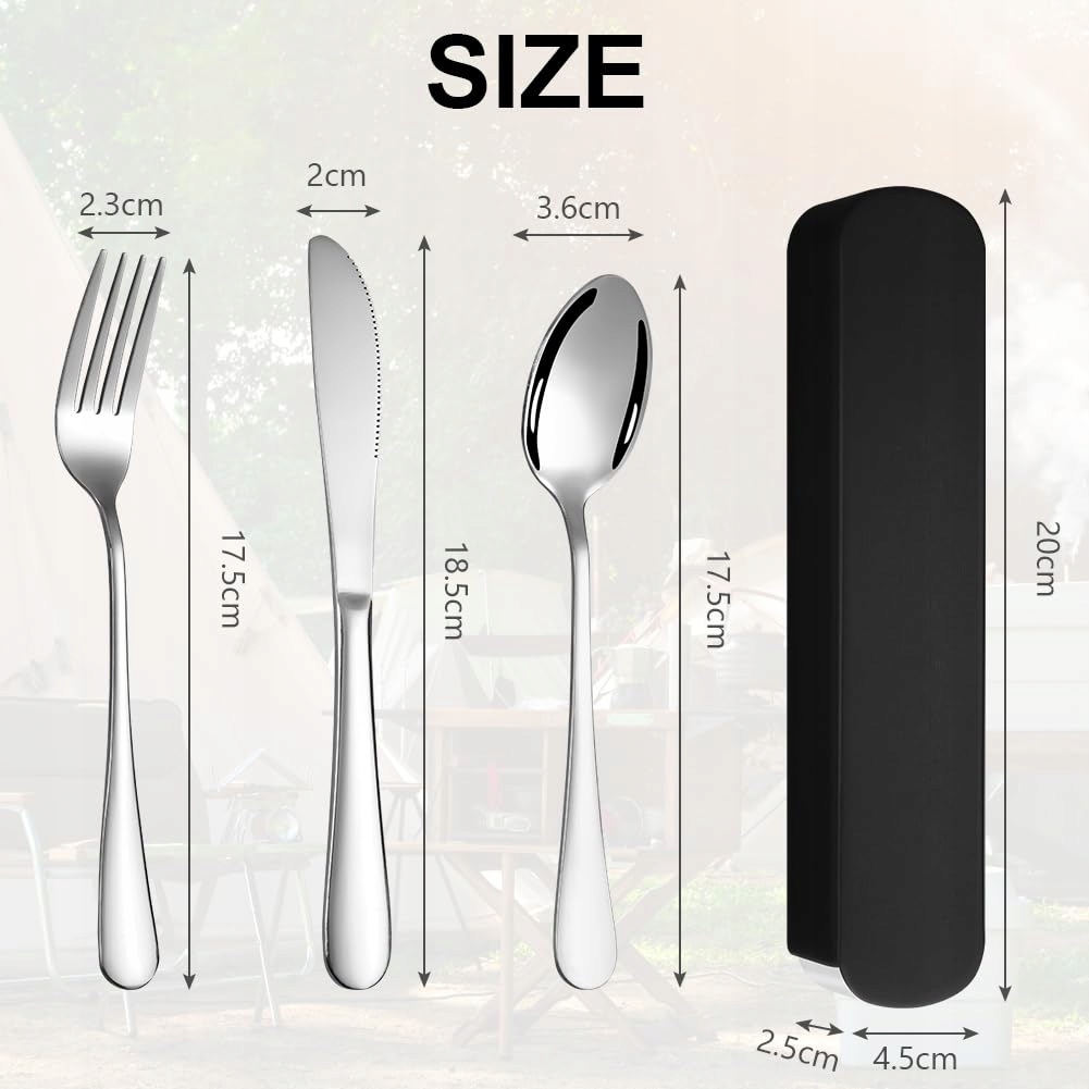 Łatwy do przenoszenia: o wymiarach 20 * 4,5 * 2,5 cm. Lekki zestaw sztućców łatwy do przenoszenia, można go łatwo schować do plecaka, torebki lub walizki. Nadaje się nie tylko do codziennego użytku, ale także na kemping, wędrówki, do pracy, biura, szkoły, pikników, festiwali jedzenia lub innych wydarzeń.