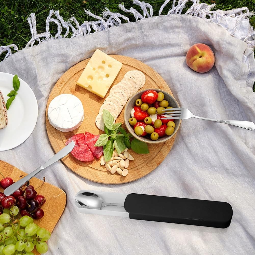 HOTUT Zestaw Sztućców Turystycznych 4 Sztuki Stal Nierdzewna Etui Czarny | Premium Supply