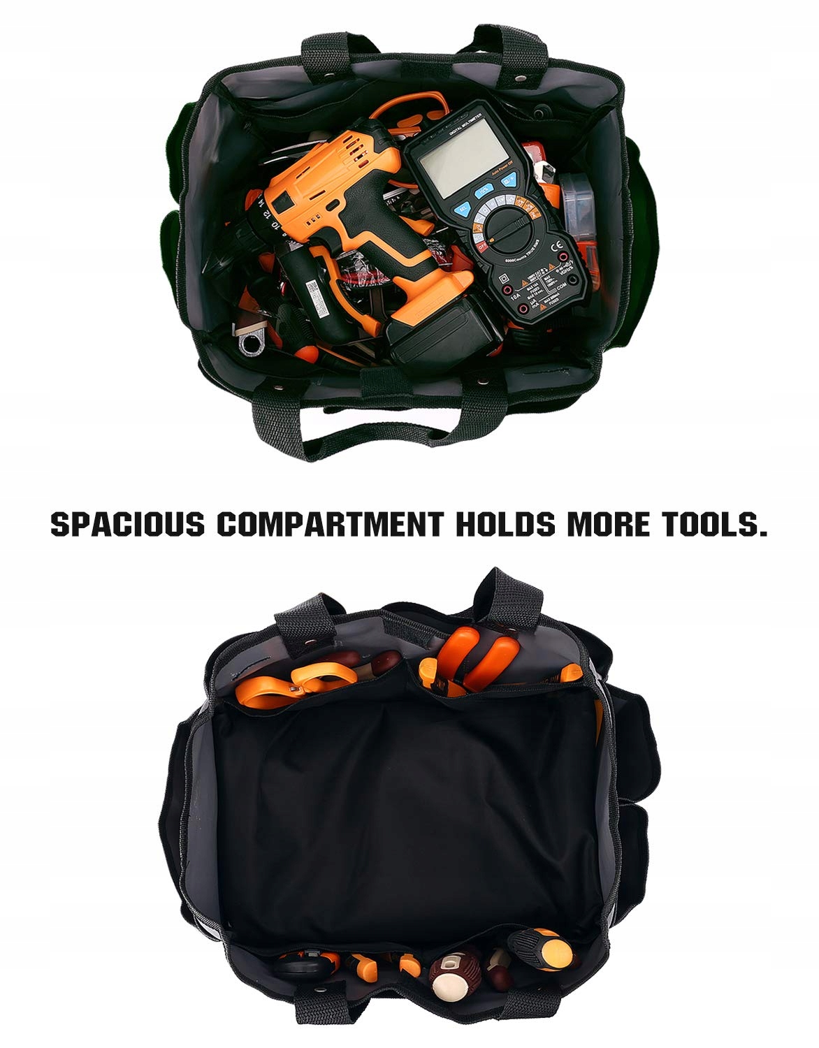 Housolution Torba na narzędzia ogrodowe, Deluxe torba na narzędzia ogrodowe i torba na sprzęt ogrodowy z małymi kieszeniami, odporna na zużycie i wielokrotnego użytku, 14 cali, ciemnozielona
